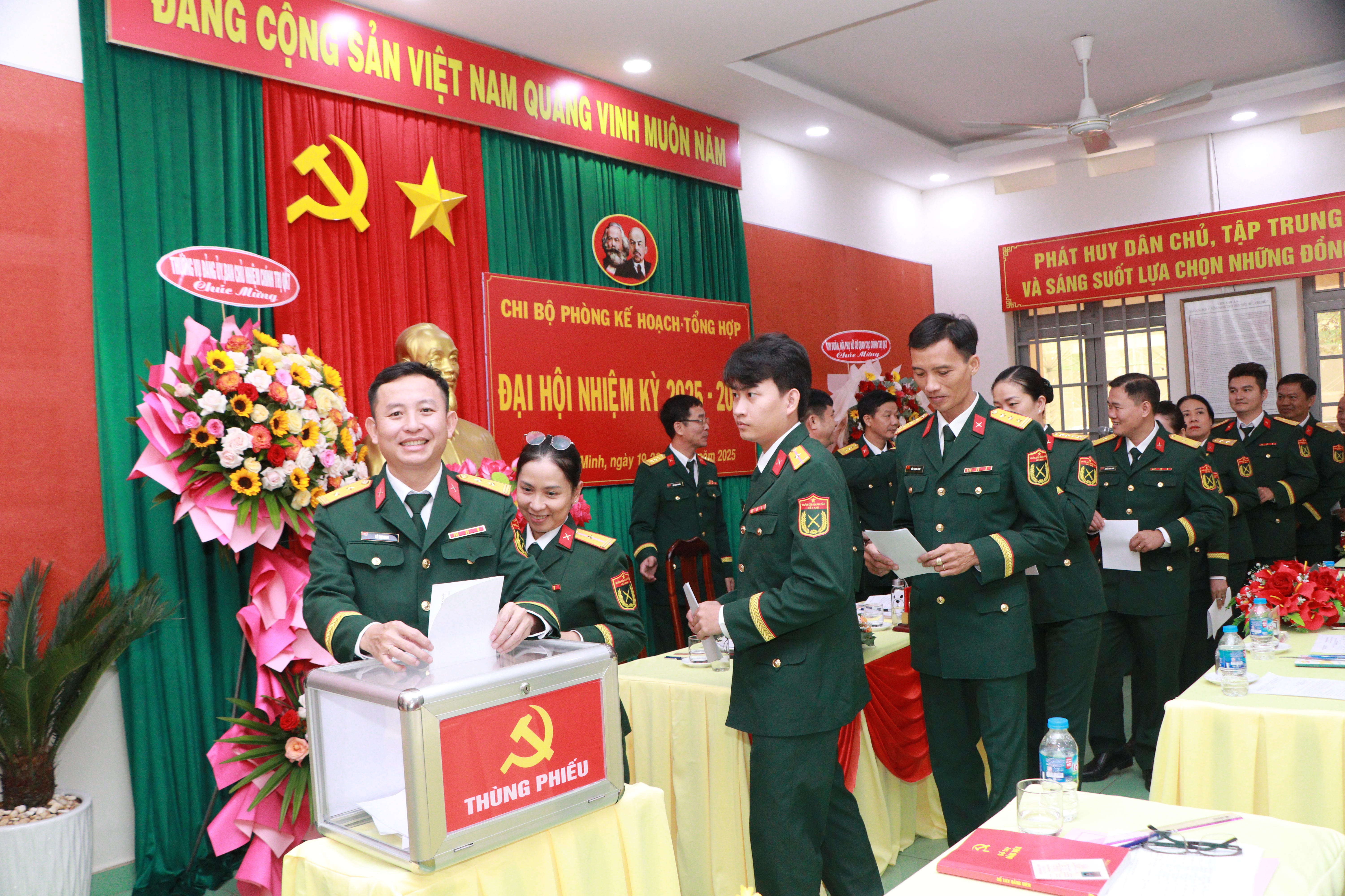 Đại hội bầu Ban Chấp hành Chi bộ Phòng Kế hoạch - Tổng hợp nhiệm kỳ 2025-2030 là 5 đồng chí; đồng chí Thượng tá Hồ Ngọc Phong, Phó trưởng phòng được bầu làm Bí thư Chi bộ; đồng chí Đại tá Nguyễn Doãn Nam, Trưởng phòng được bầu làm Phó Bí thư chi bộ với số phiếu tín nhiệm cao; bầu 8 đại biểu chính thức và 1 đại biểu dự khuyết đi dự Đại hội đại biểu Đảng bộ Cục Chính trị lần thứ XIII, nhiệm kỳ 2025 - 2030.