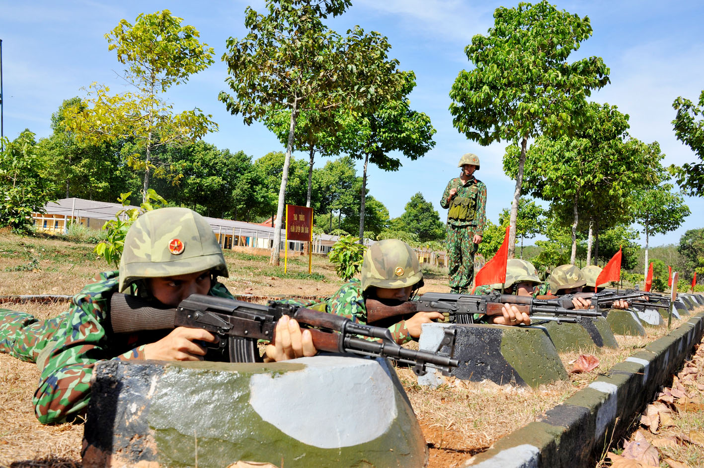 Chiến sĩ mới trong giờ huấn luyện bắn súng AK bài 1.