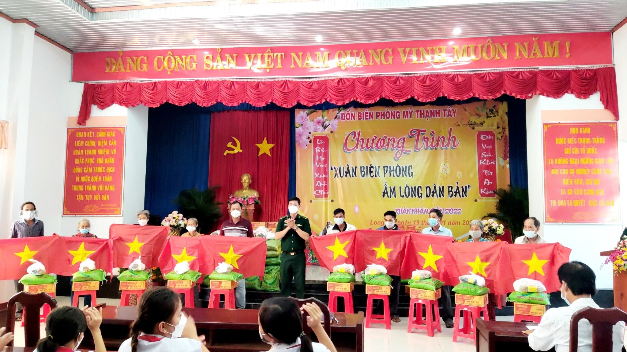 Trung tá Nguyễn Văn Hội, Đồn trưởng Đồn BP Sông Trăng, cho biết: Chương trình “Xuân BP ấm lòng dân” là chương trình, hoạt động nhằm chia sẻ những khó khăn với người dân nghèo trên biên giới, tô thắm hơn nữa tình đoàn kết quân - dân. Năm 2022, đơn vị được chọn tổ chức chương trình đầu tiên trong BĐBP tỉnh. Đồn BP Sông Trăng và UBMTTQ Việt Nam tỉnh trao tặng 160 phần quà cho hộ nghèo, cận nghèo và hộ có hoàn cảnh khó khăn ở 3 xã biên giới Hưng Hà, Hưng Điền và Hưng Điền B, huyện Tân Hưng, mỗi phần quà gồm tiền mặt, gạo, mì gói và một số nhu yếu phẩm, tổng giá trị trên 87 triệu đồng. Ngoài ra, đơn vị còn trao tặng 2 suất học bổng cho học sinh có hoàn cảnh khó khăn vươn lên trong học tập trong chương trình “Nâng bước em tới trường”, mỗi suất học bổng trị giá 6 triệu đồng.