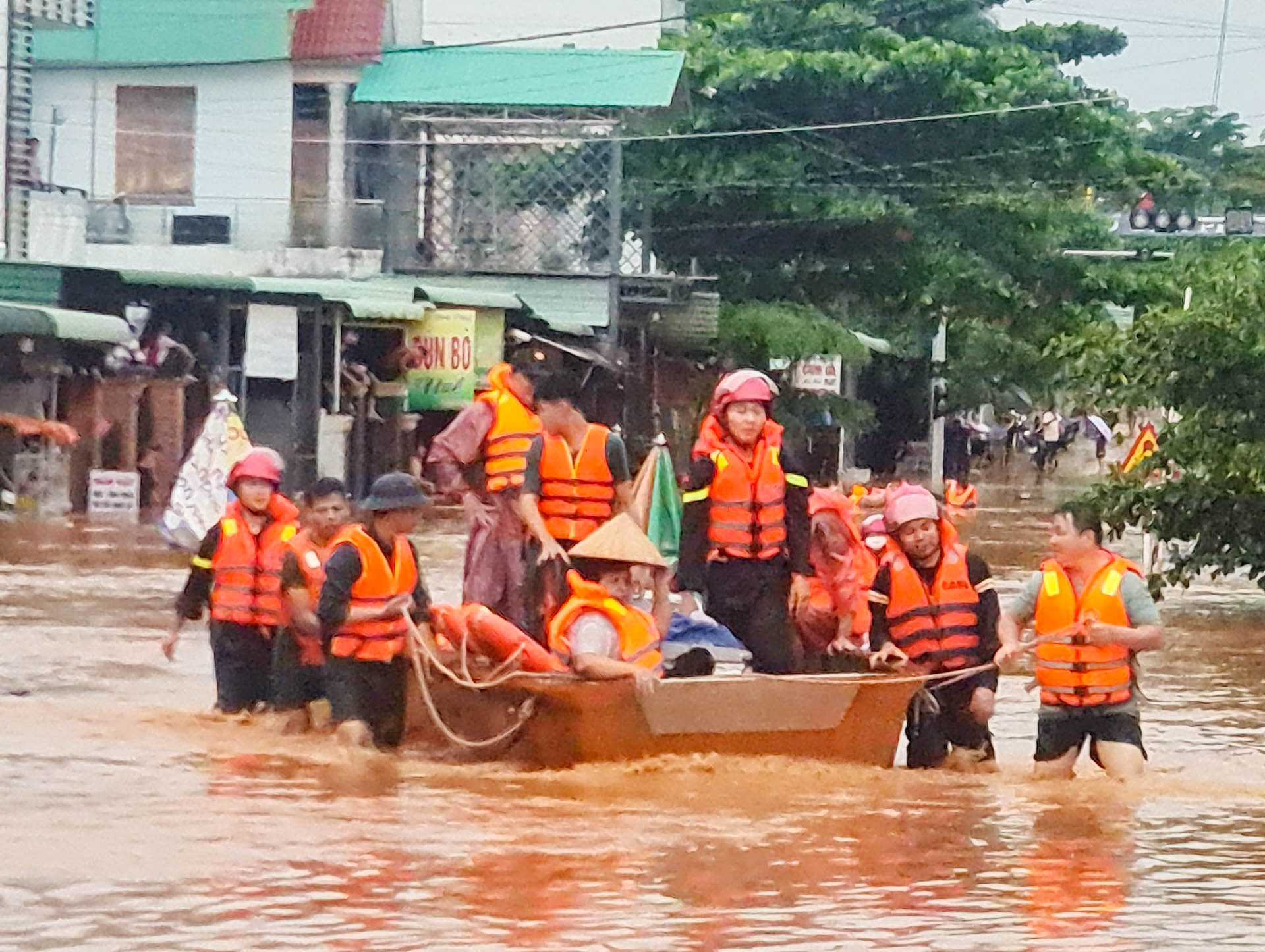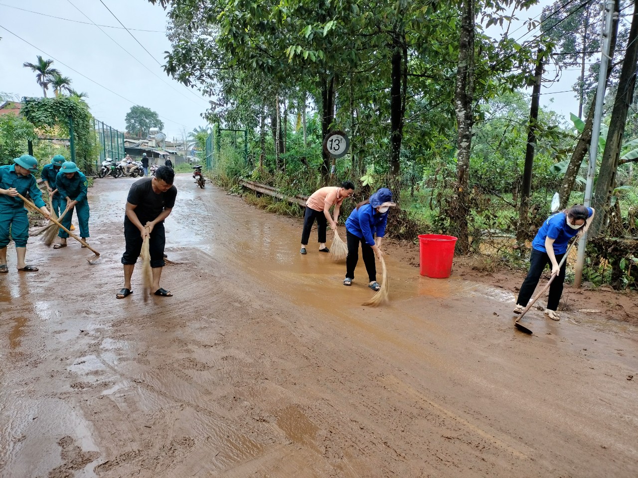 Sau khi nhận được tin báo, Thượng tá Phan Minh Bảy, Chỉ huy trưởng Ban CHQS huyện trực tiếp chỉ đạo cán bộ, chiến sĩ mang theo các vật dụng cứu hộ, cứu nạn nhanh chóng có mặt tại hiện trường. Do đường đi nhỏ và trơn, lực lượng cứu hộ phải cơ động gần 4km mới tiếp cận đến bờ sông. Tại hiện trường, nước lũ đang đổ về, bao quanh là dòng chảy xiết, hung dữ làm ngập lụt nhiều nơi. Trong suốt ngày 27-7, các cán bộ, chiến sĩ giúp đỡ hàng trăm hộ dân chống chọi với lũ lụt trên tinh thần tình nguyện vì dân, được Nhân dân tin yêu, cảm phục. Không chỉ giúp người dân đảm bảo an toàn tuyệt đối về người mà các cán bộ, chiến sĩ còn giúp một số hộ trong khu vực bị ngập lụt di chuyển đồ đạc an toàn. Hiện nay, các lực lượng tiếp tục giúp nhân dân khắc phục hậu quả sau mưa lũ.