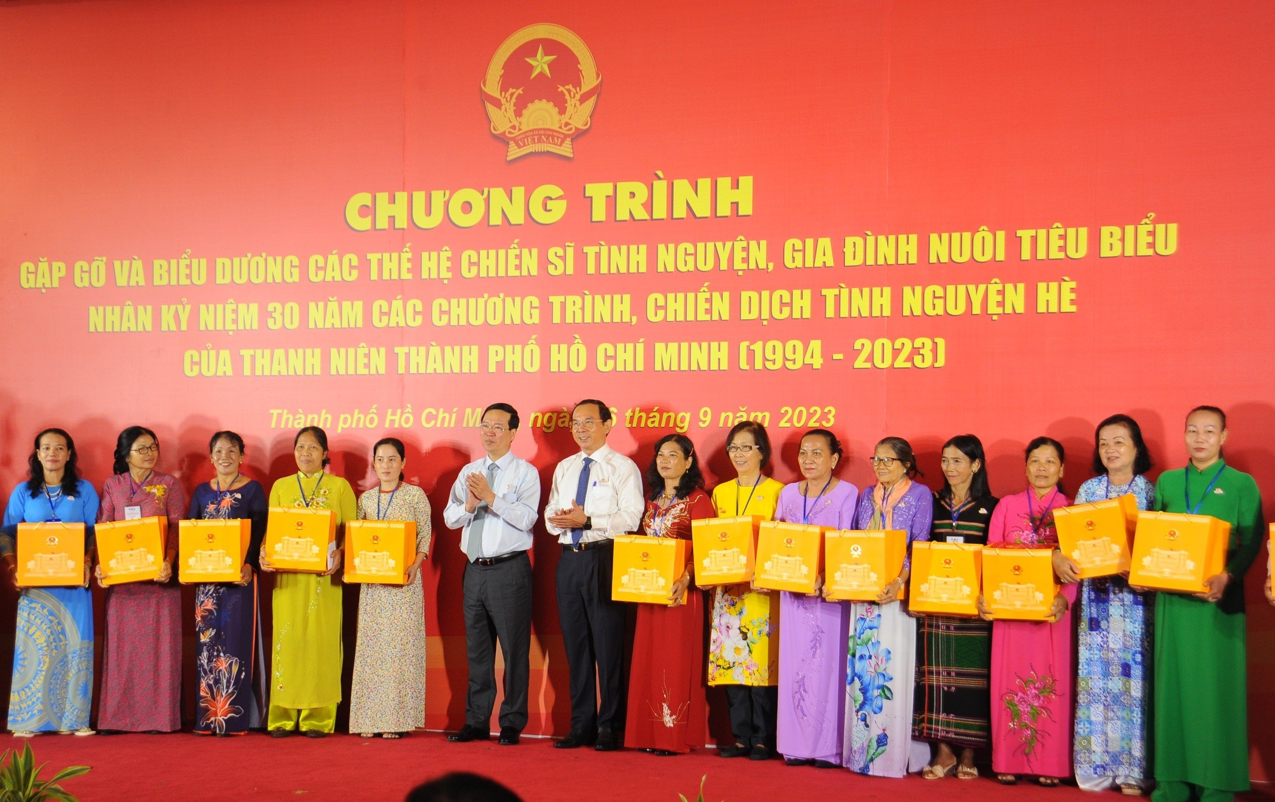 Chủ tịch nước Võ Văn Thưởng tặng quà các thế hệ chiến sĩ tình nguyện, gia đình nuôi tiêu biểu