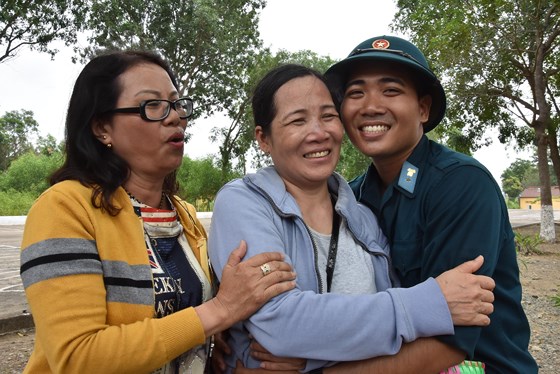 Chiến sĩ Lưu Phước Lộc (sính 1994) hạnh phúc ngày gặp được mẹ.