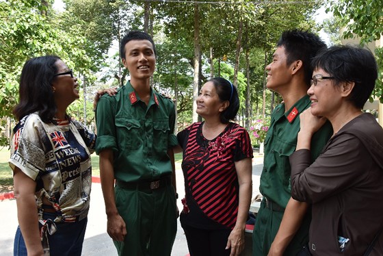 Chúng tôi ngược về Trung đoàn Gia Định (quận 12), những ngày cuối tuần, đơn vị không huấn luyện. Thời gian này, tân binh tập thể thao, nghỉ ngơi, đợi người thân tới thăm... 8 giờ 30 sáng, mẹ và và bác của tân binh Nguyễn Chí Nhân (23 tuổi, ngụ huyện Bình Chánh), chiến sĩ Đại đội Bộ binh 9, Tiểu đoàn 3 đã có mặt tại phòng chờ người thân.