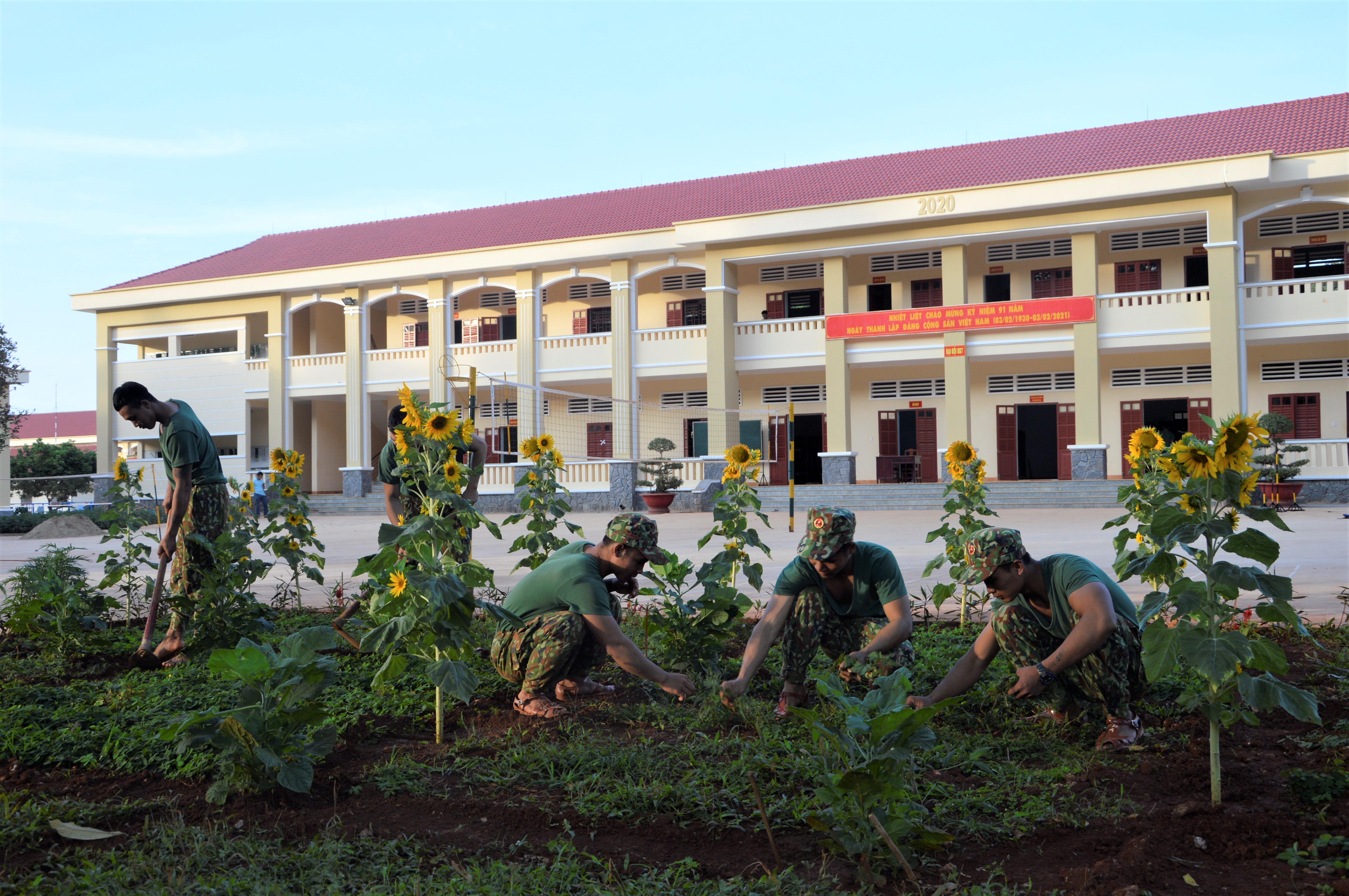 Chiến sĩ tích cực chăm sóc cảnh quan đơn vị