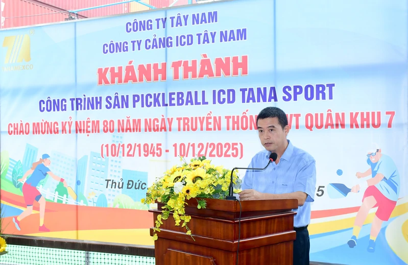 Phát biểu tại buổi khánh thành, Thượng tá Nguyễn Ngọc Khánh, Giám đốc Cảng ICD Tây Nam cho biết: Công ty Cảng ICD Tây Nam khánh thành 2 Sân Pickleball ICD Tana Sport. Đây là công trình chào mừng kỷ niệm 80 năm Ngày truyền thống Quân khu 7 (10/12/1945 - 10/12/2025); đồng thời, tạo sân chơi bổ ích để cán bộ, công nhân viên, người lao động công ty tiếp cận với môn thể thao này nhằm giải trí, tập luyện ngoài giờ làm việc, góp phần thúc đẩy phong trào thể thao trong toàn công ty và giao lưu với đơn vị kết nghĩa nhằm trao đổi kinh nghiệm, phát huy tinh thần đoàn kết, gắn bó với các đơn vị đối tác với công ty …