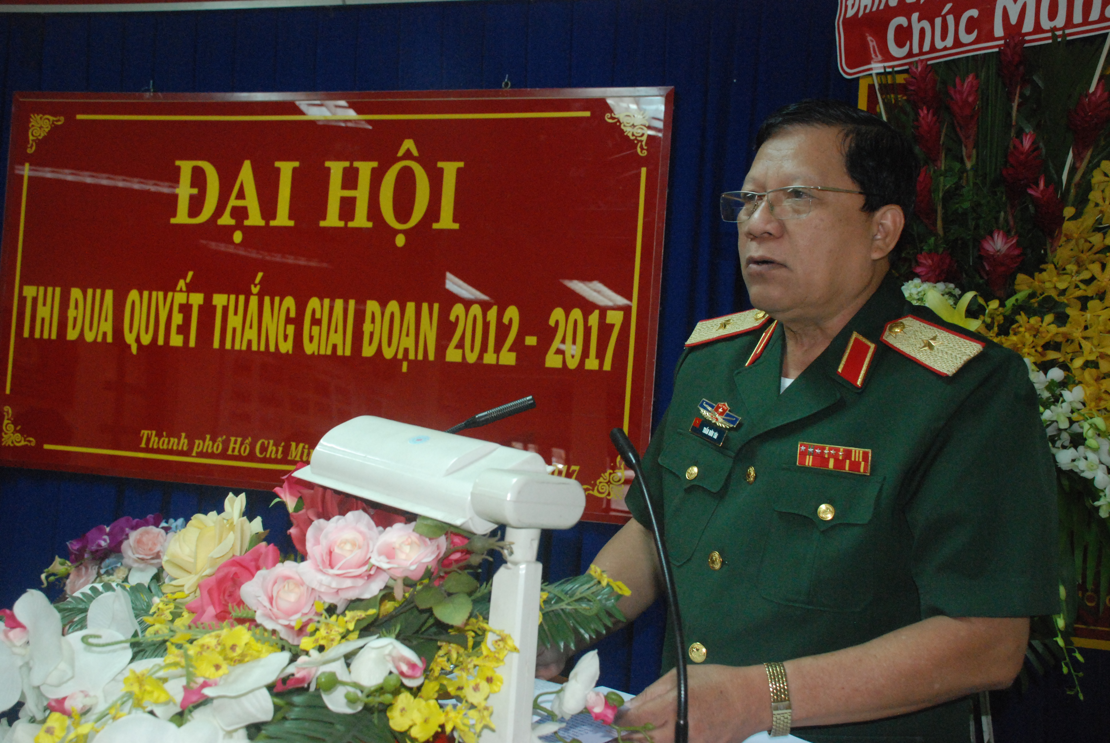 Thiếu tướng Trần Hữu Tài, Phó Chủ nhiệm chính trị Quân khu phát biểu tại Đại hội