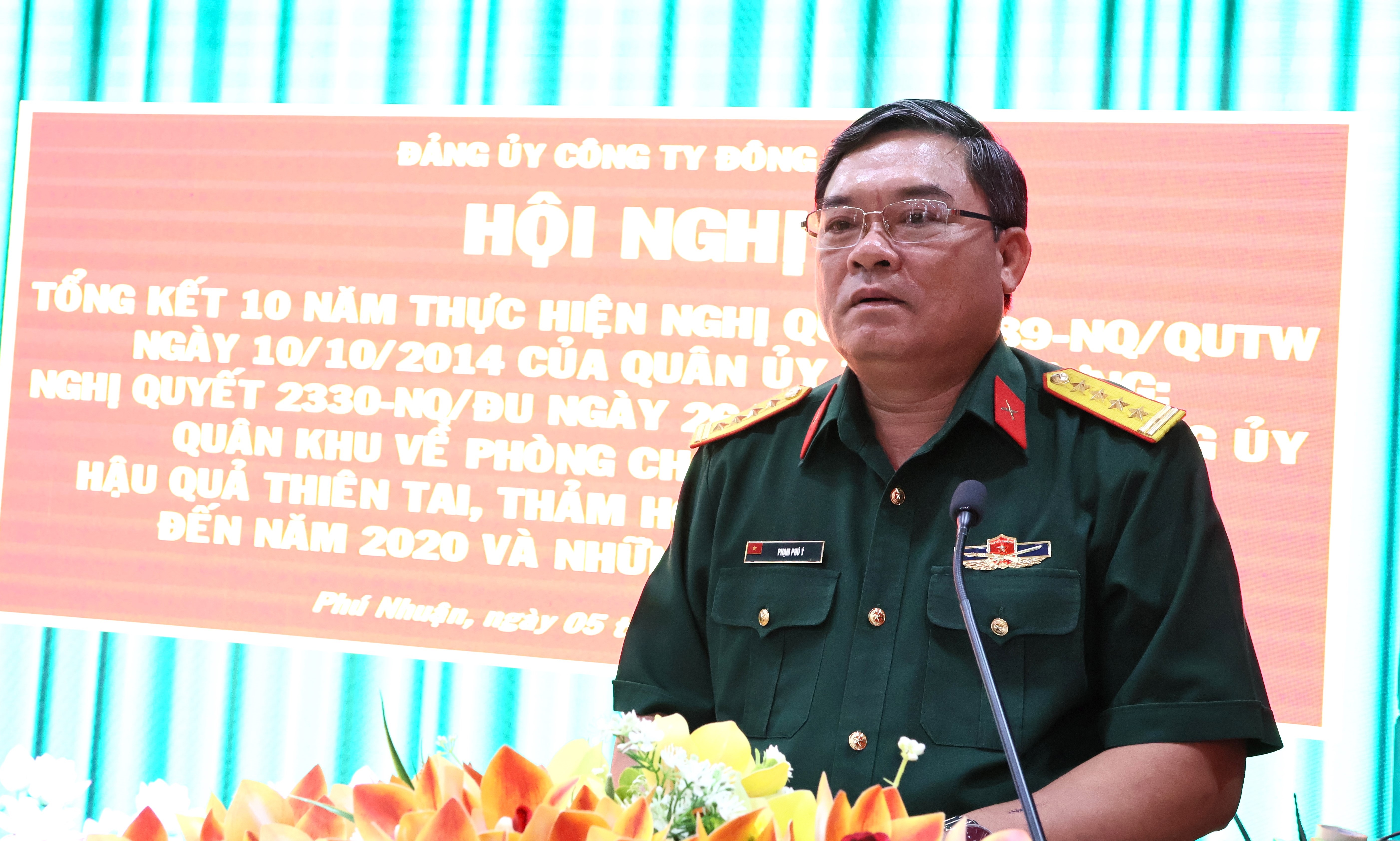 Đại tá Phạm Phú Ý, Phó Tham mưu trưởng Quân khu phát biểu chỉ đạo.