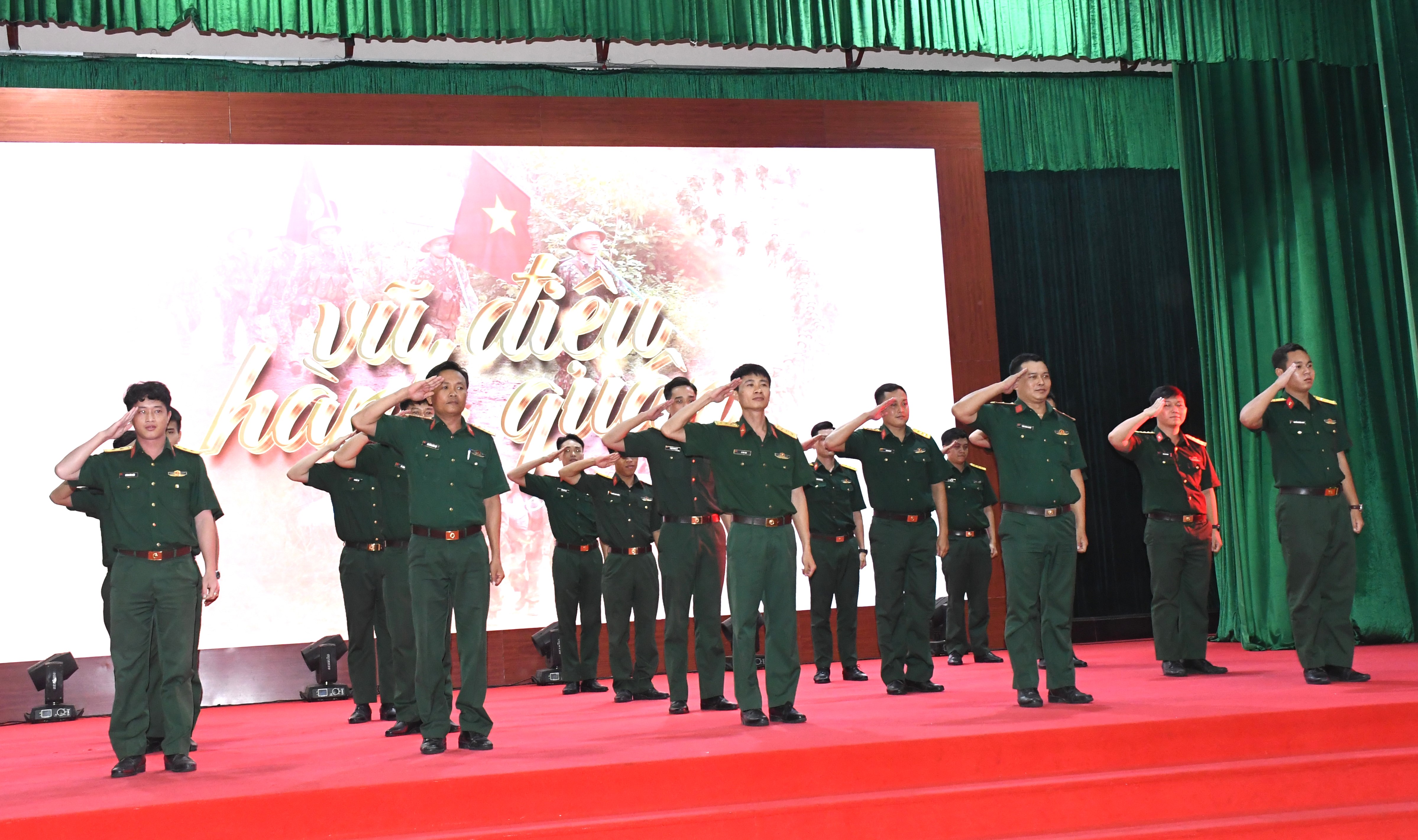 Thủ trưởng Cục Chính trị và Sư đoàn 5 dự bế mạc tập huấn các vũ điệu trong sinh hoạt tập thể cho bộ đội.