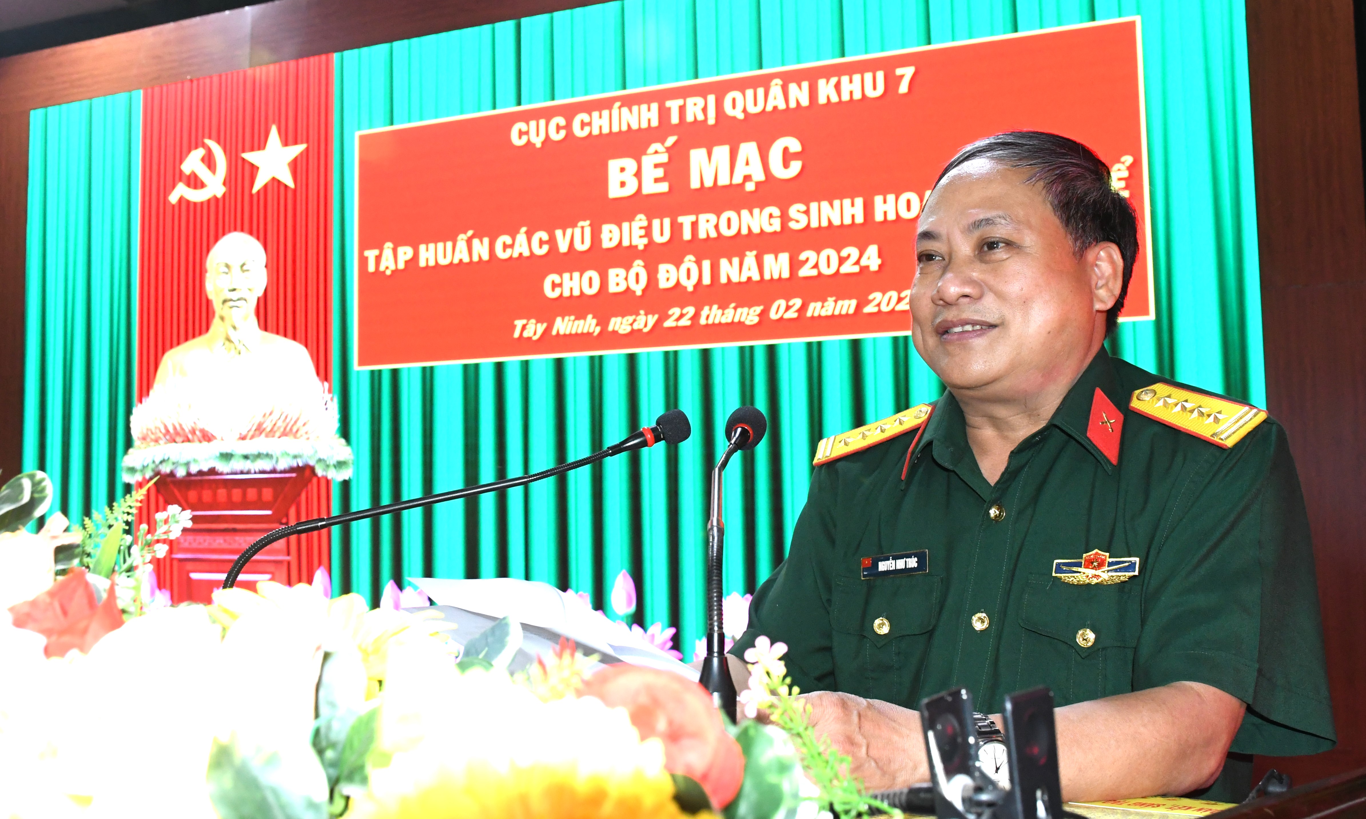 Đại tá Nguyễn Như Trúc, Phó Chủ nhiệm Chính trị Quân khu phát biểu bế mạc lớp tập huấn.