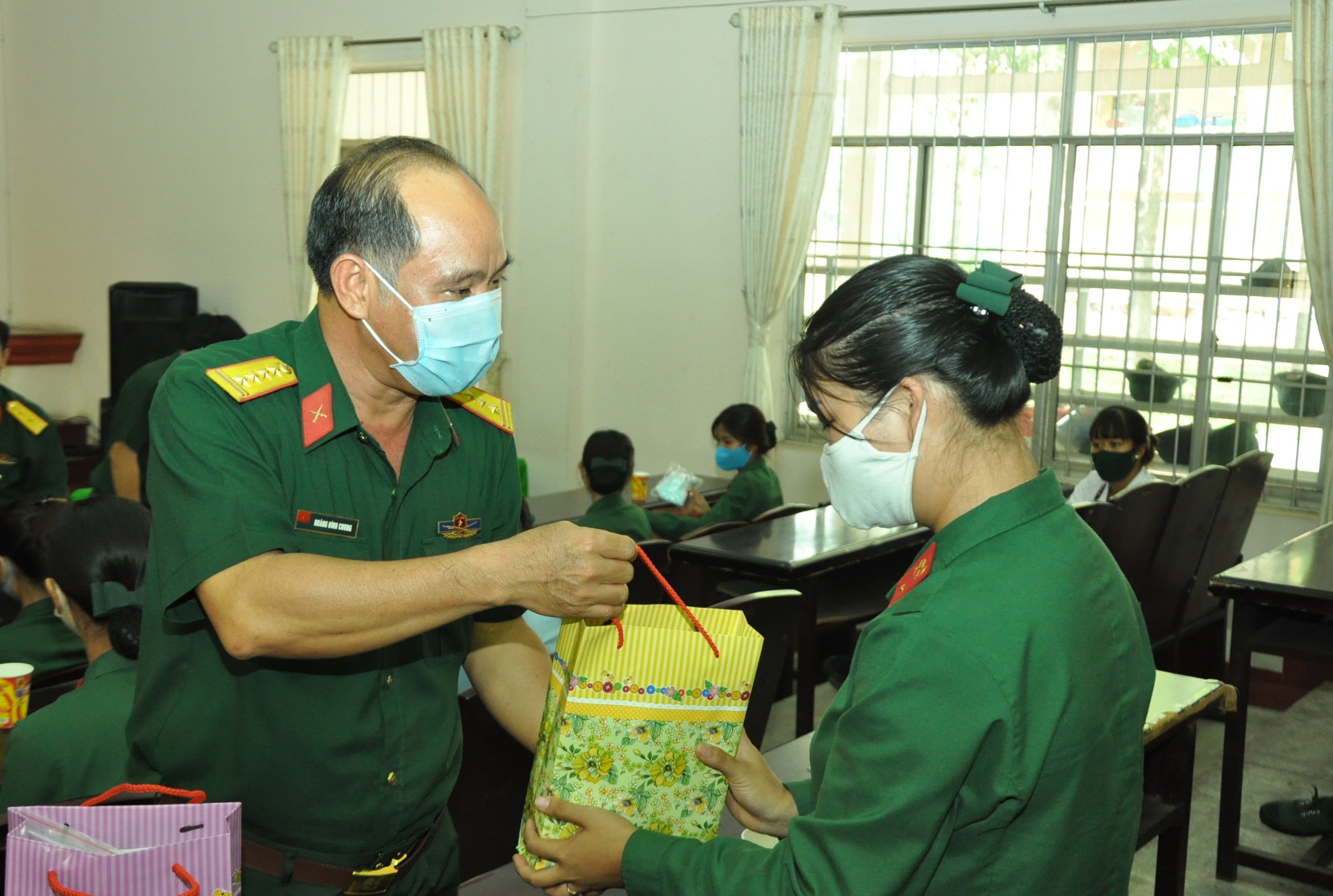 (QK7 Online) – Chiều ngày 28/4, Đại tá Hoàng Đình Chung, Phó Chủ nhiệm Chính trị Quân khu cùng Ban Thanh niên, Ban Phụ nữ, Ban Công đoàn Cục Chính trị Quân khu đến thăm, tặng quà cho các tân binh nữ đang huấn luyện tại Trường Quân sự Quân khu 7.