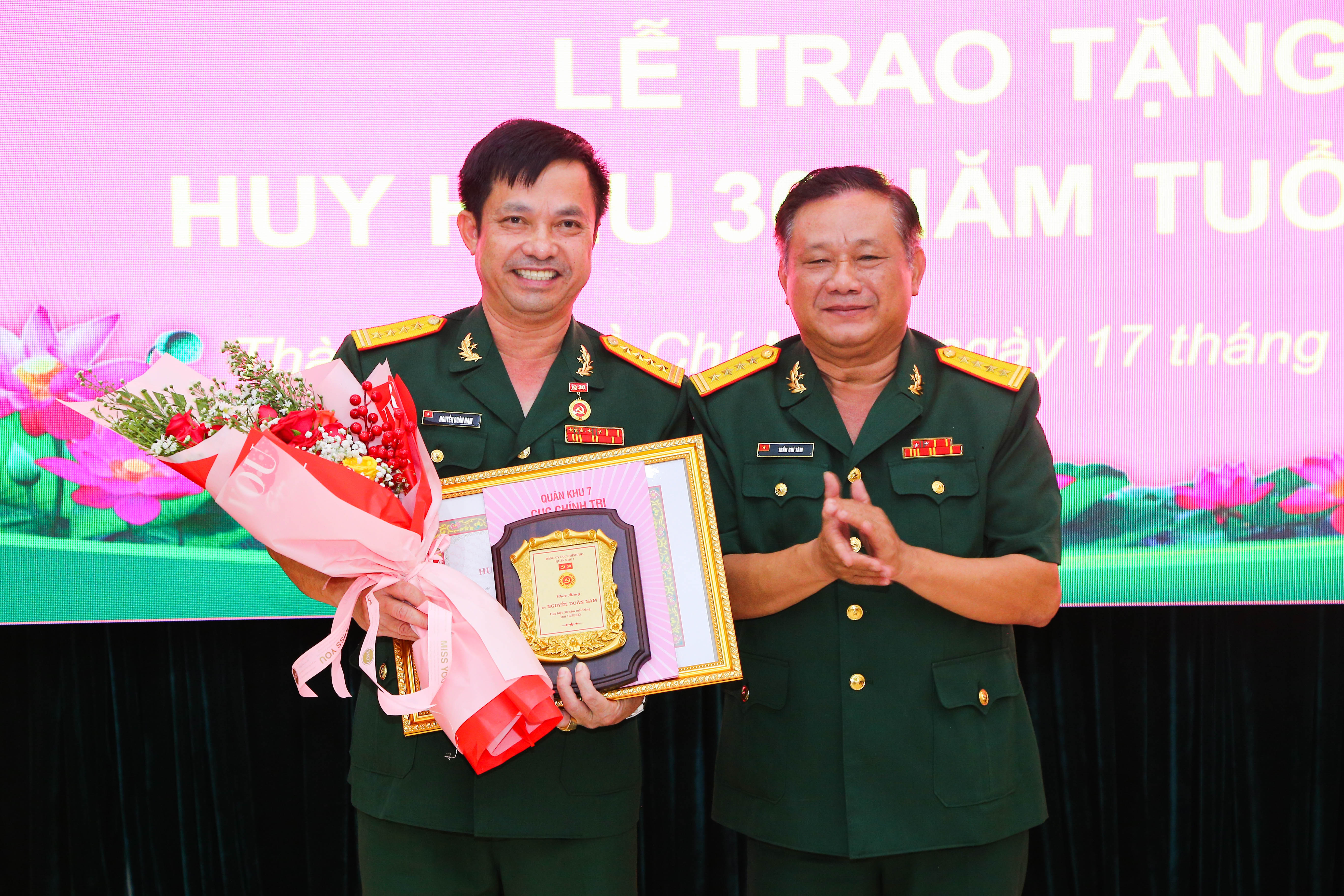 Nhân dịp này, Đảng bộ, Cục Chính trị Quân khu 7 tổ chức lễ trao tặng huy hiệu 30 năm tuổi Đảng cho đồng chí Đại tá Nguyễn Doãn Nam, Trưởng Phòng Kế hoạch - Tổng hợp, Cục Chính trị Quân khu.