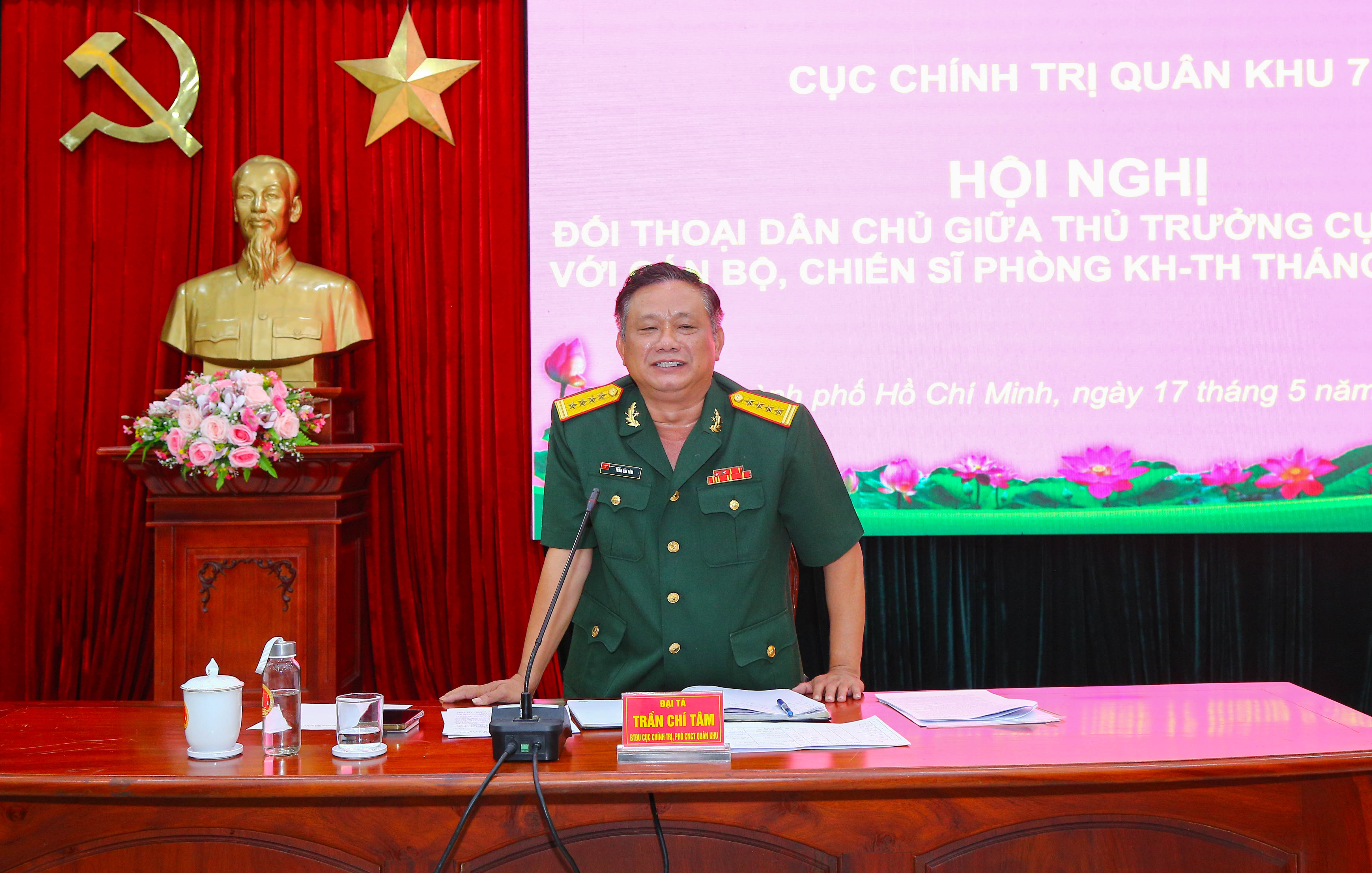 Đại tá Trần Chí Tâm, Bí thư Đảng ủy Cục chính trị, Phó Chủ nhiệm Chính trị Quân khu quán triệt nội dung đối thoại.