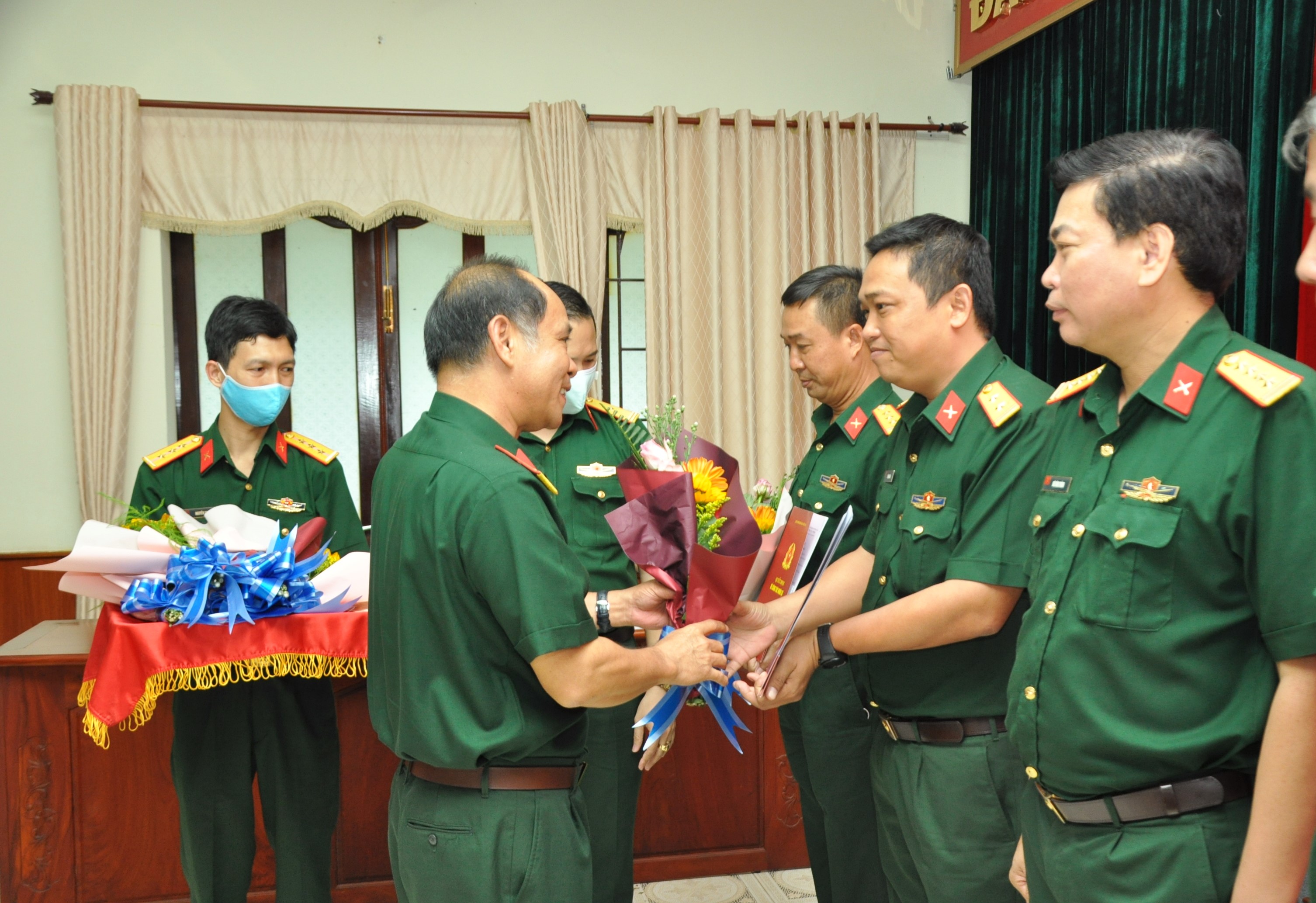 Đại tá Hoàng Đình Chung, Chủ nhiệm Chính trị Quân khu 7 trao quyết định cho cán bộ.