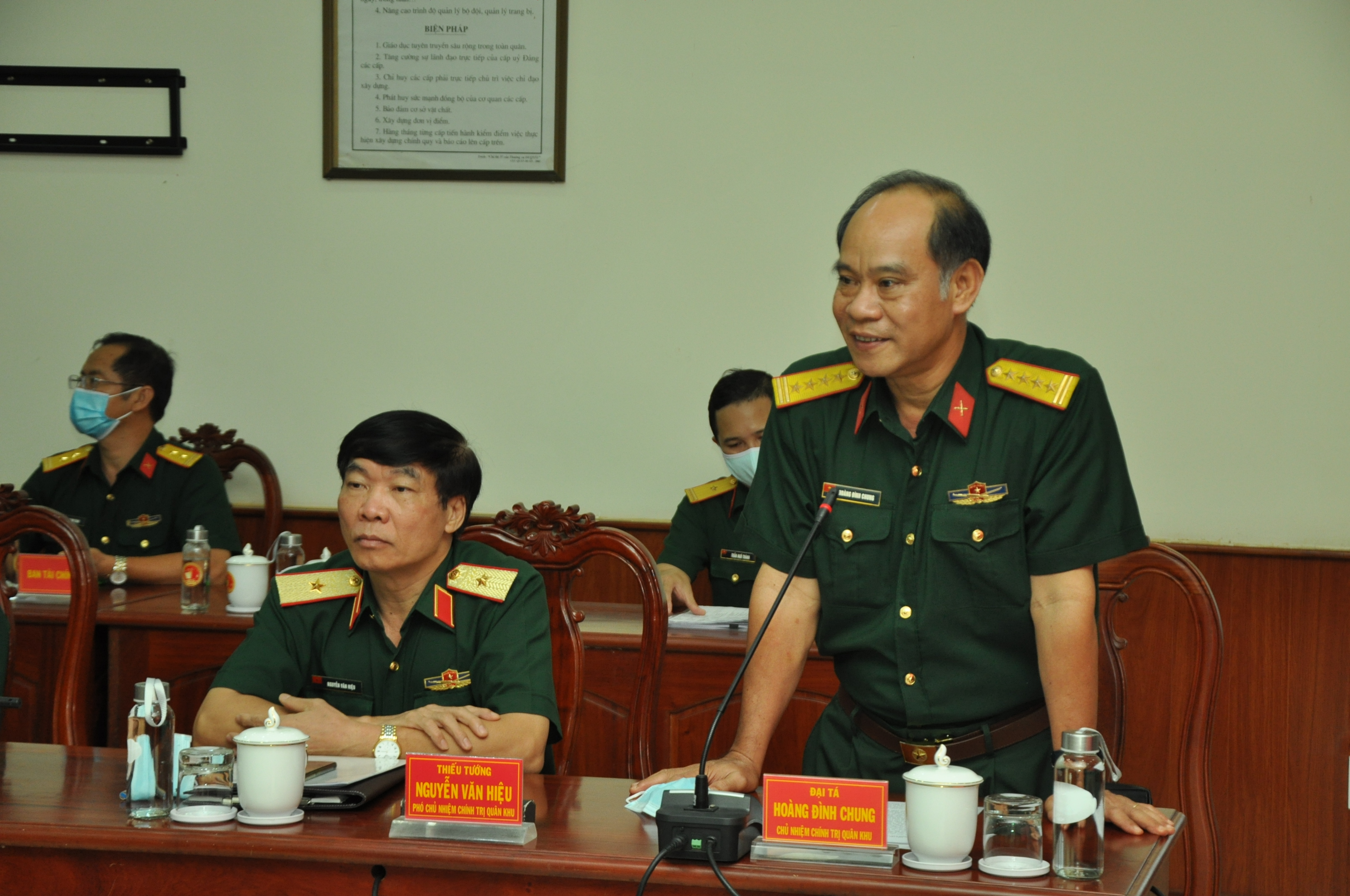 Đại tá Hoàng Đình Chung, Chủ nhiệm Chính trị Quân khu phát biểu tại buổi trao quyết định.