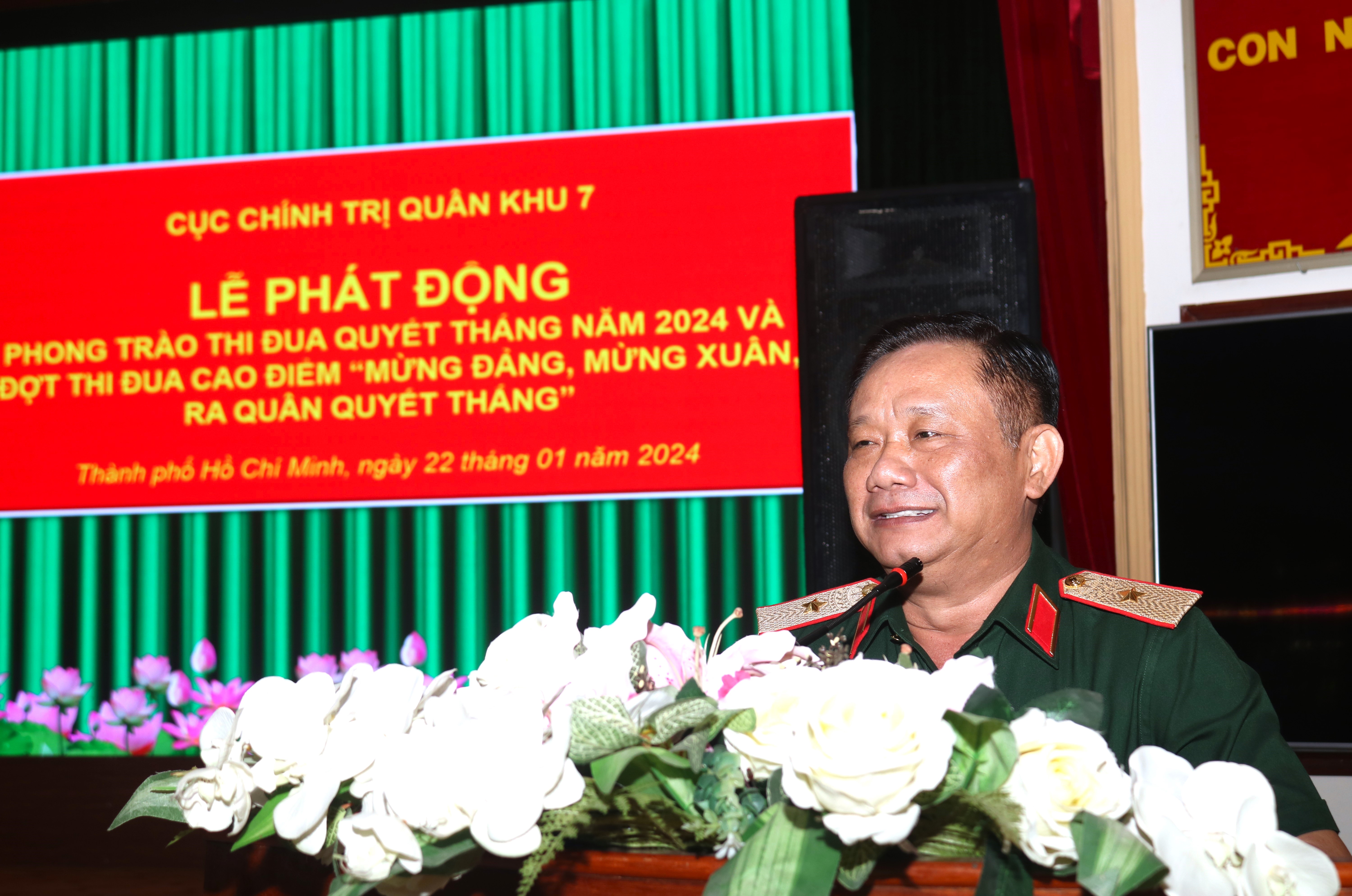 Thiếu tướng Trần Chí Tâm, Bí thư Đảng ủy Cục Chính trị, Phó Chủ nhiệm Chính trị Quân khu phát động Phong trào Thi đua Quyết thắng năm 2024.