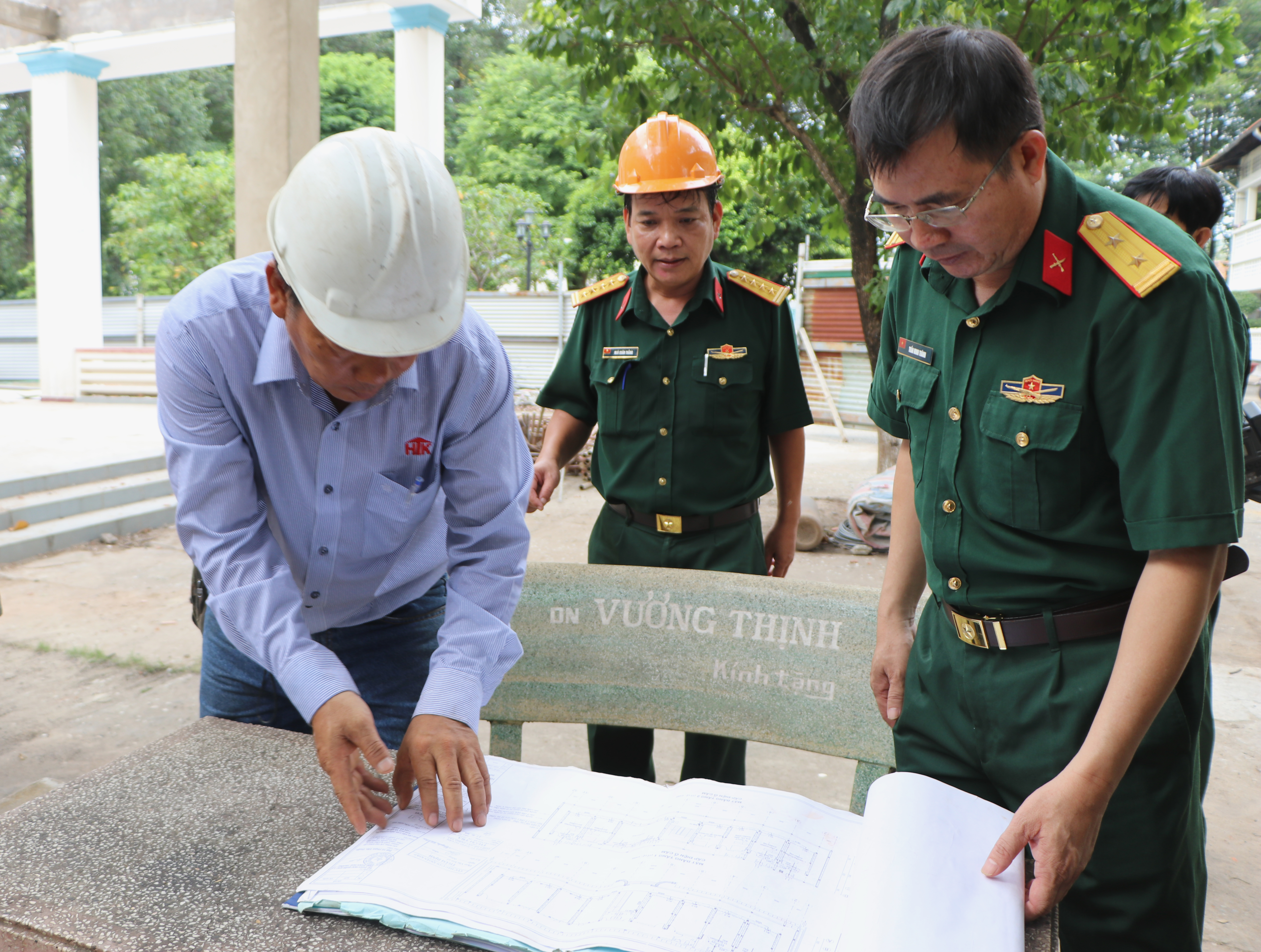 Đại tá Phan Đăng Sơn cùng Đoàn kiểm tra công trình xây dựng nhà làm việc cơ quan Cục Kỹ thuật.