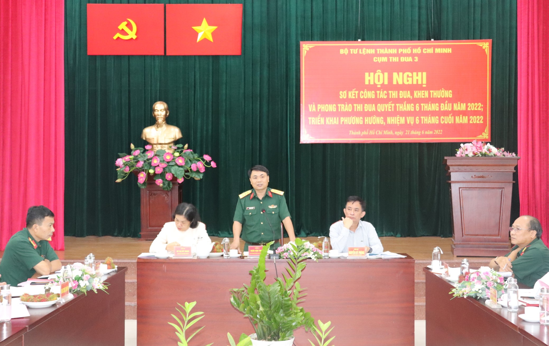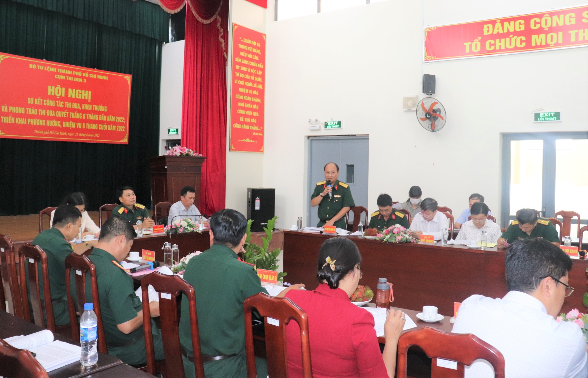Thượng tá Trần Văn Trung, Phó Chủ nhiệm trị Bộ Tư lệnh Thành phố phát biểu chỉ đạo hội nghị.