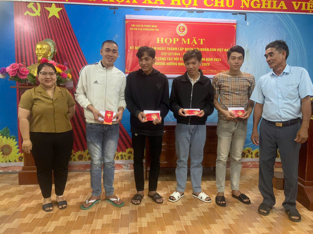 Chi hội CCB thôn Bình Tân, xã Phước Minh, huyện Bù Gia Mập, tỉnh Bình Phước động viên thanh niên nhập ngũ năm 2025.