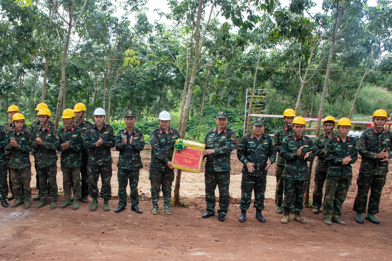 Cùng ngày, đoàn công tác đến thăm, kiểm tra, động viên, tặng quà cho cán bộ, chiến sĩ Lữ đoàn 279, Binh chủng công binh đang thực hiện nhiệm vụ xây dựng công trình trên địa bàn tỉnh Tây Ninh.