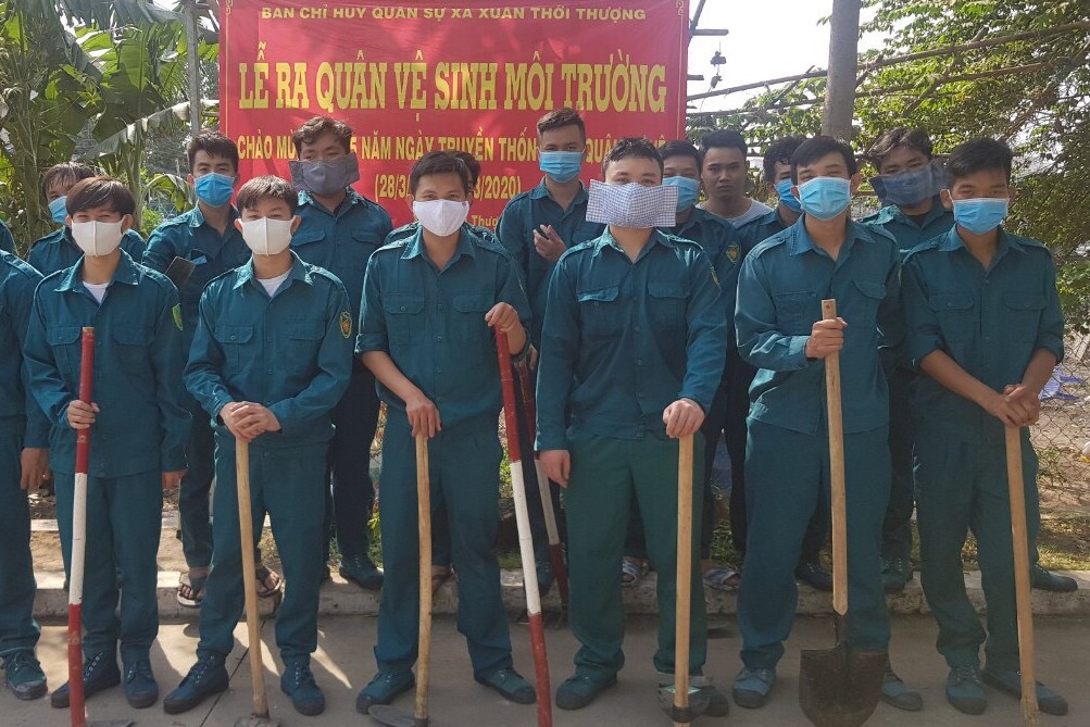 (QK7 Online)  - Thiết thực chào mừng kỷ niệm 85 năm ngày Truyền thống Dân quân Tự vệ (28/3/1935 - 28/3/2020), ngày 22/3, Ban Chỉ huy Quân sự xã Xuân Thới Thượng, huyện Hóc Môn, Thành phố Hồ Chí Minh tổ chức Lễ ra quân vệ sinh môi trường.
