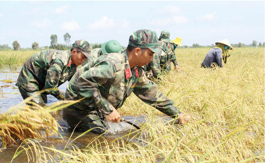 LLVT Long An giúp dân thu hoạch lúa hè thu chạy lũ                                            Ảnh: Trung Dũng
