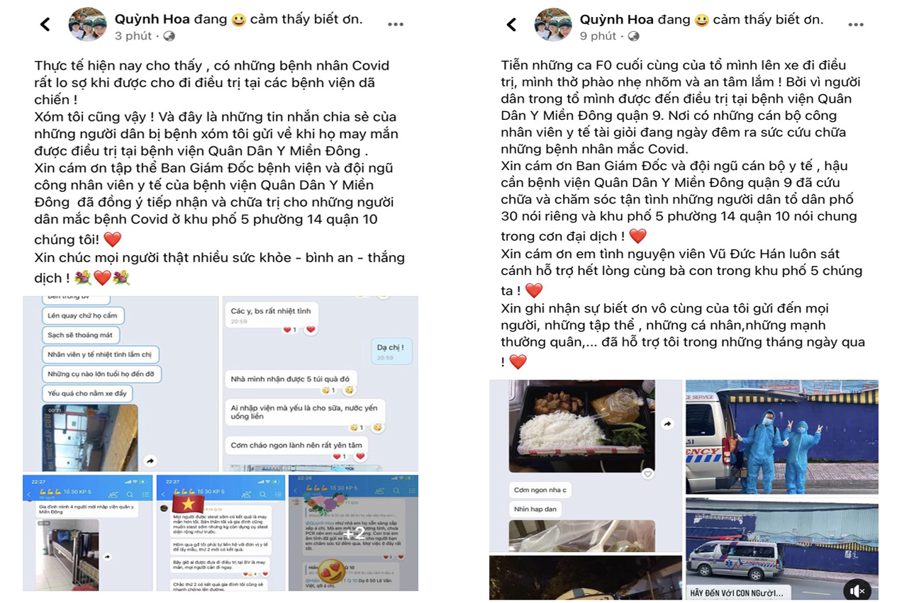 Một tài khoản facebook bày tỏ lòng biết ơn đối với các y, bác sĩ Bệnh viện Quân dân y miền Đông