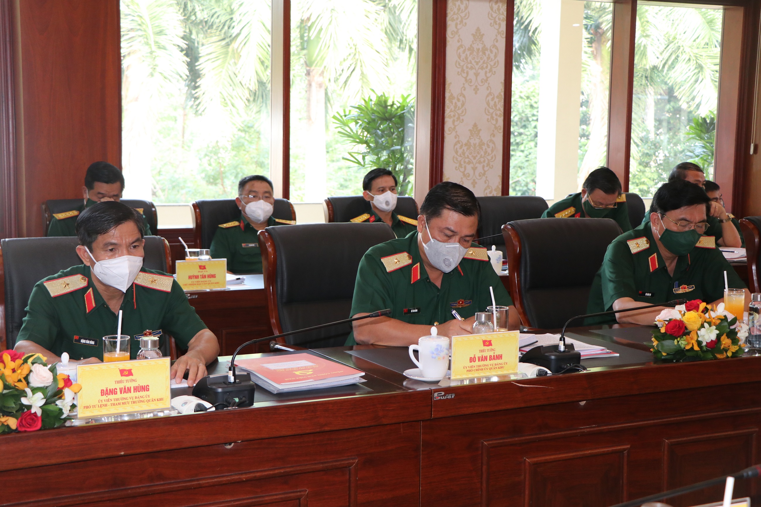 Trên mặt trận chống dịch Covid-19, Đảng ủy Quân khu chủ động trao đổi với cấp ủy, chính quyền địa phương, kịp thời tham mưu, đề xuất QUTW, BQP tăng cường lực lượng, phương tiện cùng với các địa phương triển khai thực hiện quyết liệt các chủ trương, giải pháp phòng, chống dịch (với tổng quân số trên 26 ngàn cán bộ, chiến sĩ; 47 ngàn lượt phương tiện, 102 ngàn chuyến vận tải các loại giúp dân thu hoạch mùa màng, vận chuyển, tiêu thụ hơn 180 ngàn tấn nông, thủy, hải sản, rau, củ, quả và nhu yếu phẩm hỗ trợ nhân dân vượt qua khó khăn).