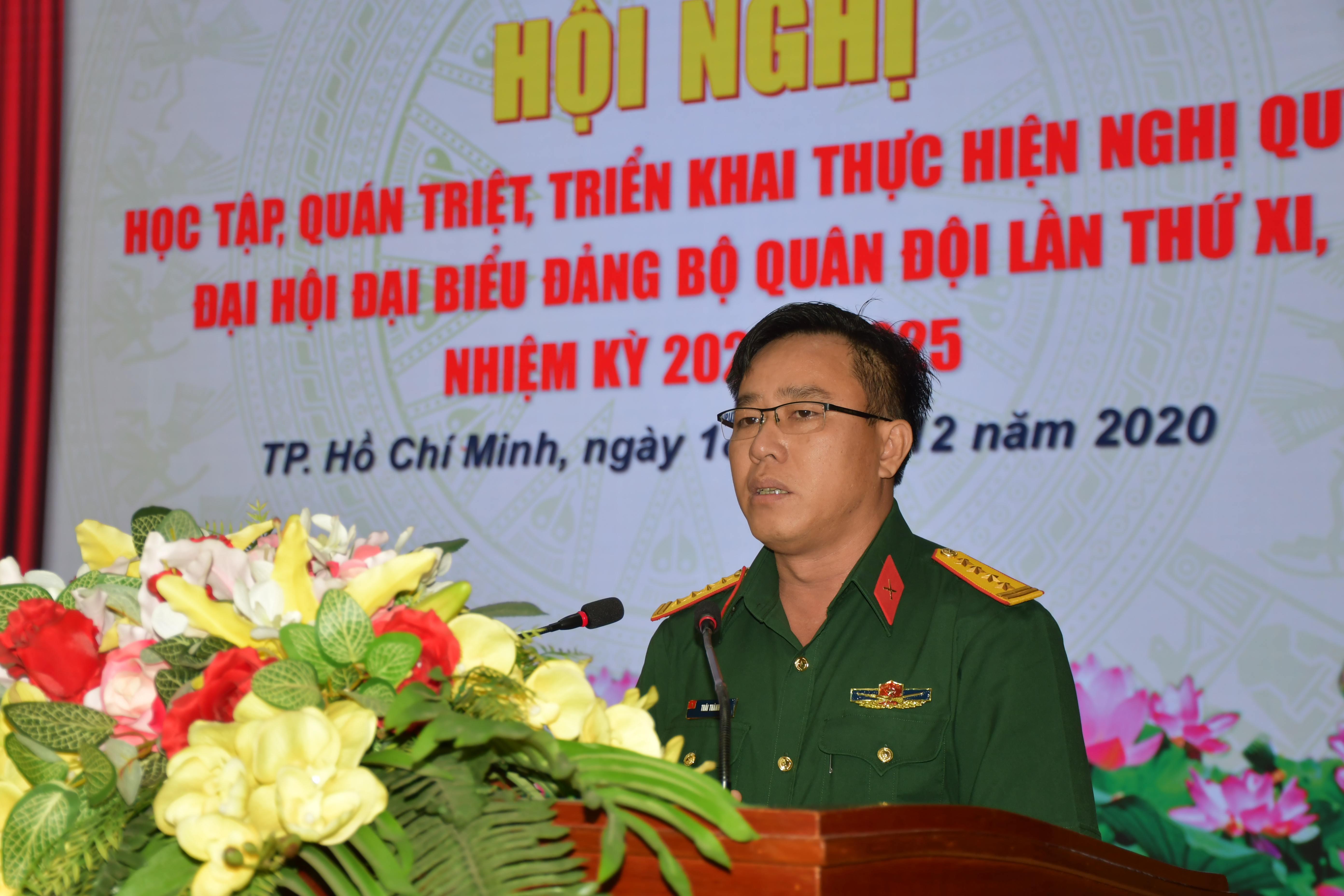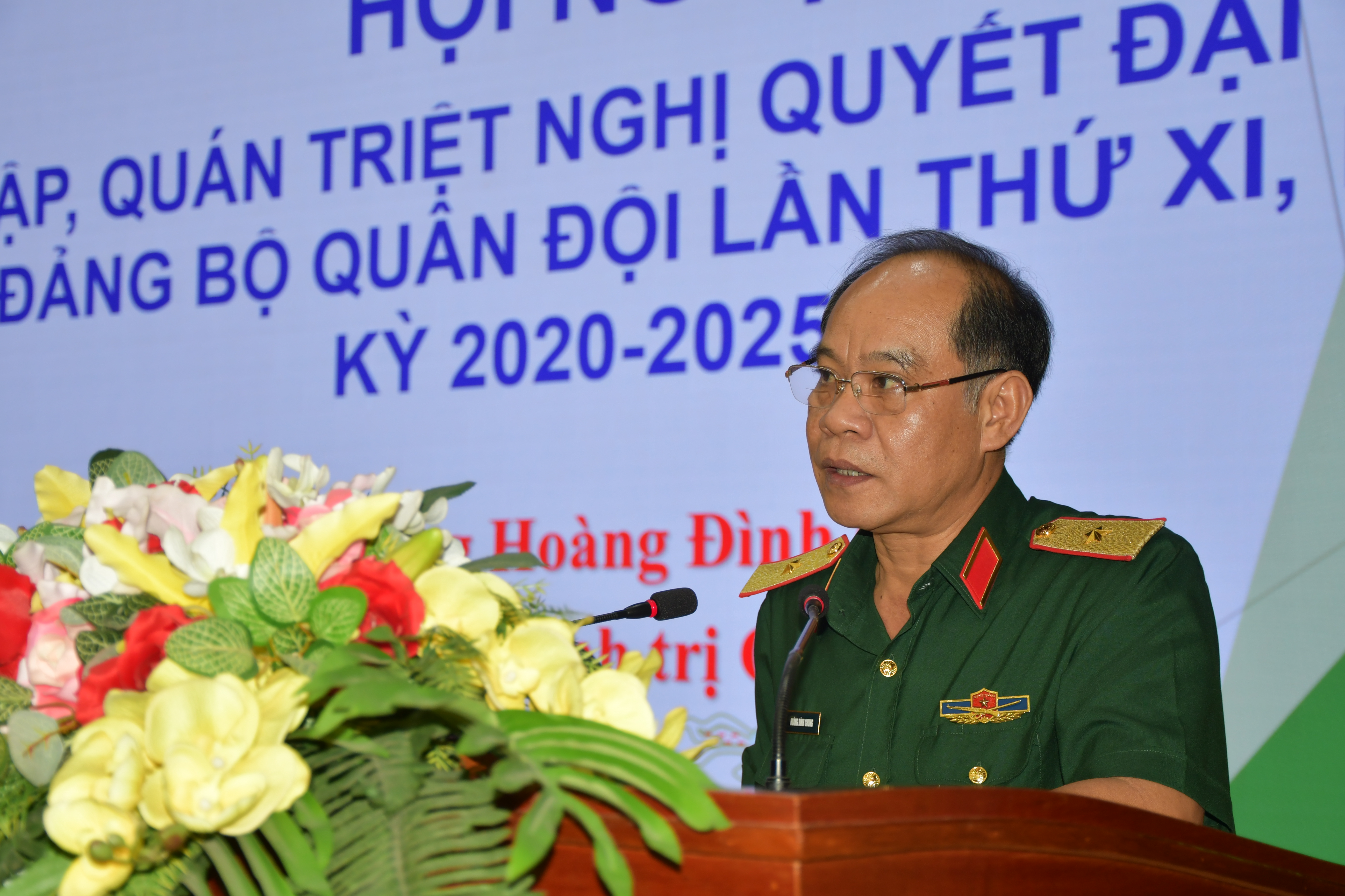 Tại hội nghị, Thiếu tướng Hoàng Đình Chung, Chủ nhiệm chính trị Quân khu đã quán triệt những nội dung cơ bản của Nghị quyết Đại hội đại biểu Đảng bộ Quân đội lần thứ XI, nhiệm kỳ 2020 - 2025; bên cạnh nêu bật những thành tựu và kết quả nổi bật trong thực hiện Nghị quyết đại hội Đảng bộ Quân đội lần thứ X, nhiệm kỳ 2015 – 2020 đi sâu phân tích, làm rõ những nội dung quan trọng, phương hướng, mục tiêu, nhiệm vụ và giải pháp chủ yếu mà Nghị quyết Đại hội Đảng bộ Quân đội lần thứ XI, nhiệm kỳ 2020-2025 đã đề ra. Quán triệt sâu sắc chủ trương, đường lối của Đảng, chính sách, pháp luật của Nhà nước về quân sự, quốc phòng, giữ vững và tăng cường sự lãnh đạo tuyệt đối, trực tiếp về mọi mặt của Đảng đối với quân đội. Quán triệt và làm rõ ba đột phá chiến lược về tổ chức biên chế; huấn luyện và đào tạo; chấp hành kỷ luật, pháp luật của bộ đội và cải cách hành chính; trong đó có việc thực hiện Đề án tổ chức Quân đội nhân dân Việt Nam giai đoạn 2020-2025; ưu tiên nguồn lực xây dựng đồng bộ, hiện đại đối với lực lượng phòng không - không quân, hải quân, thông tin liên lạc, tác chiến điện tử, trinh sát kỹ thuật, cảnh sát biển, tác chiến không gian mạng, cơ yếu; hiện đại hóa một số thành phần của lực lượng lục quân.