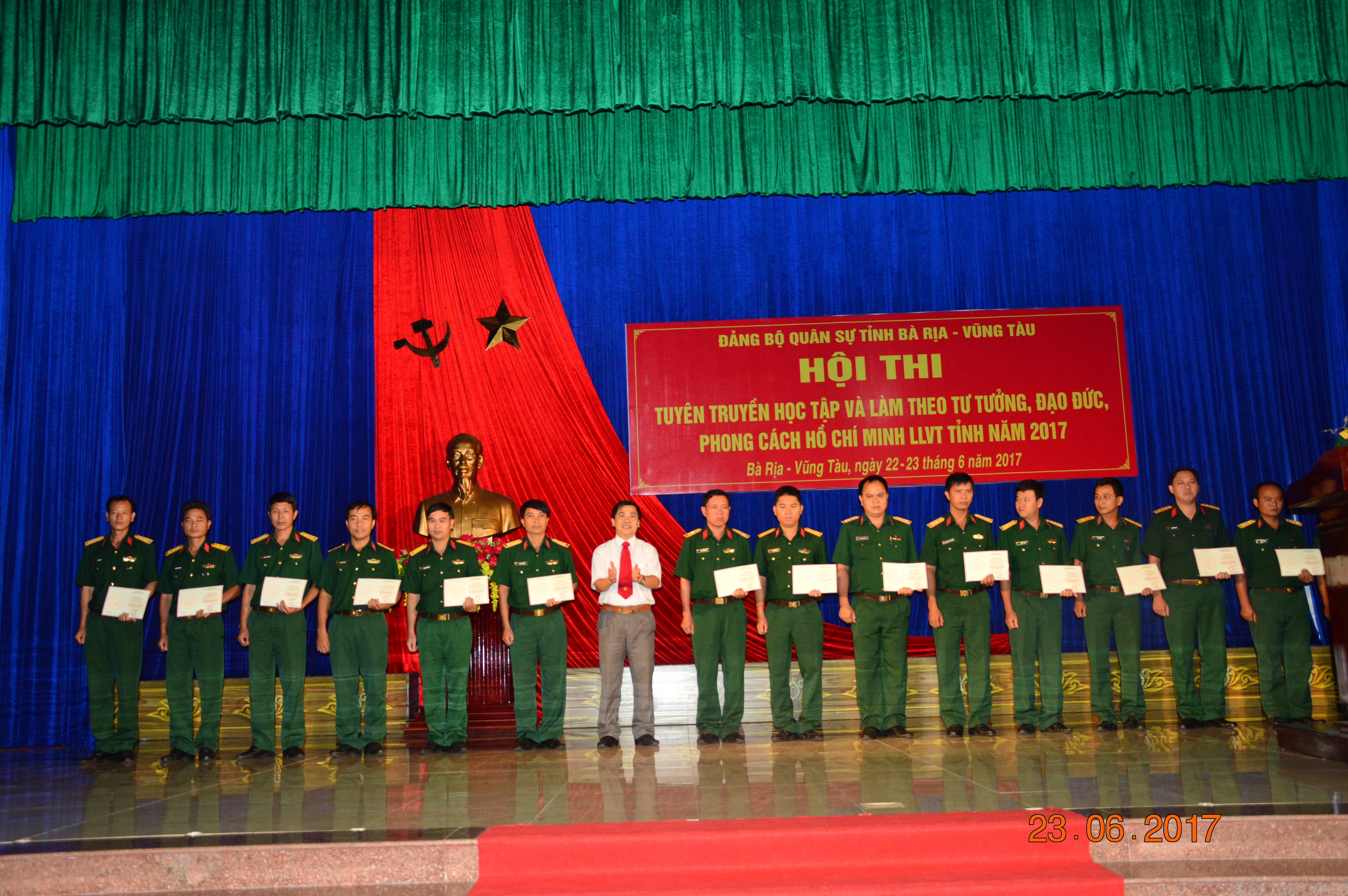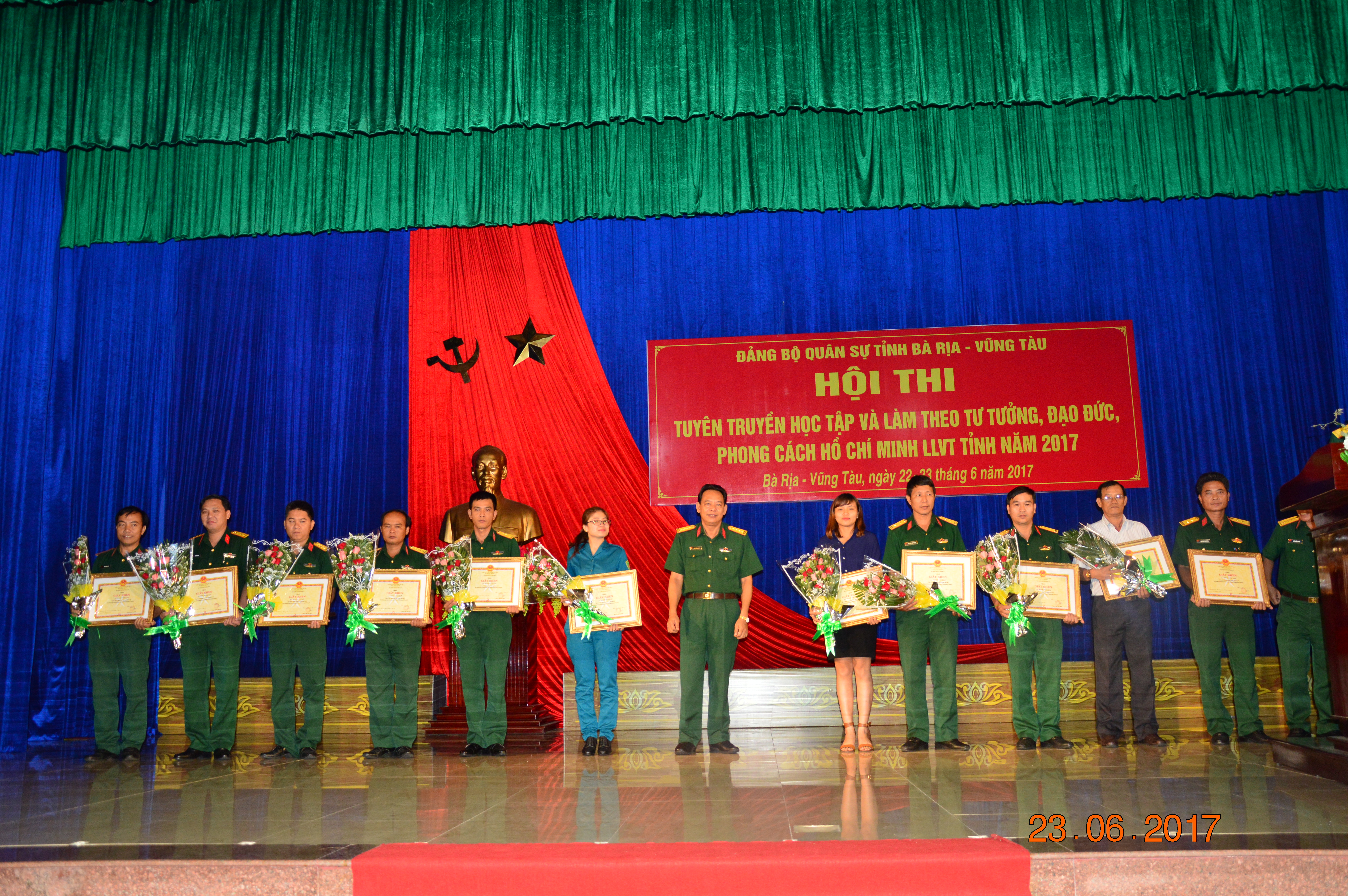 Kết thúc hội thi Ban tổ chức đã trao đồng giải nhất cho đồng chí Nguyễn Lê Ngân Tố, Chính trị viên phó Ban chỉ huy quân sự Phường Long Hương, TP. Bà Rịa và đồng chí Nguyễn Thị Nhâm, Chính trị viên phó Ban Chỉ huy quân sự Phường 11, TP. Vũng Tàu, giải Nhì cho đồng chí Đại úy Nguyễn Văn Đàn, Bí thư chi bộ Tiểu đoàn bộ, tiểu đoàn Công Binh 792 Côn Đảo, đồng chí Đại úy Tô Văn Khuê, Bí thư chi bộ Đại đội Thiết giáp, Phòng Tham mưu, giải Ba cho đồng chí Thượng úy Nguyễn Văn Lục, Bí thư chi bộ Đại đội 2, Côn Đảo, đồng chí Đại úy Mã Minh Trí, Phó bí thư chi bộ Ban Tham mưu, Ban CHQS TP. Bà Rịa và Thiếu tá Phạm Văn Nam chi bộ Ban Chính trị Trường Quân sự tỉnh. Có 28 đồng chí được công nhận báo cáo viên giỏi cấp Bộ chỉ huy quân sự tỉnh năm 2017.