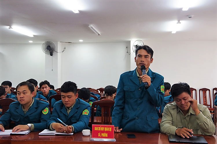 Cán bộ Ban CHQS xã, phường phát biểu tại buổi đối thoại.