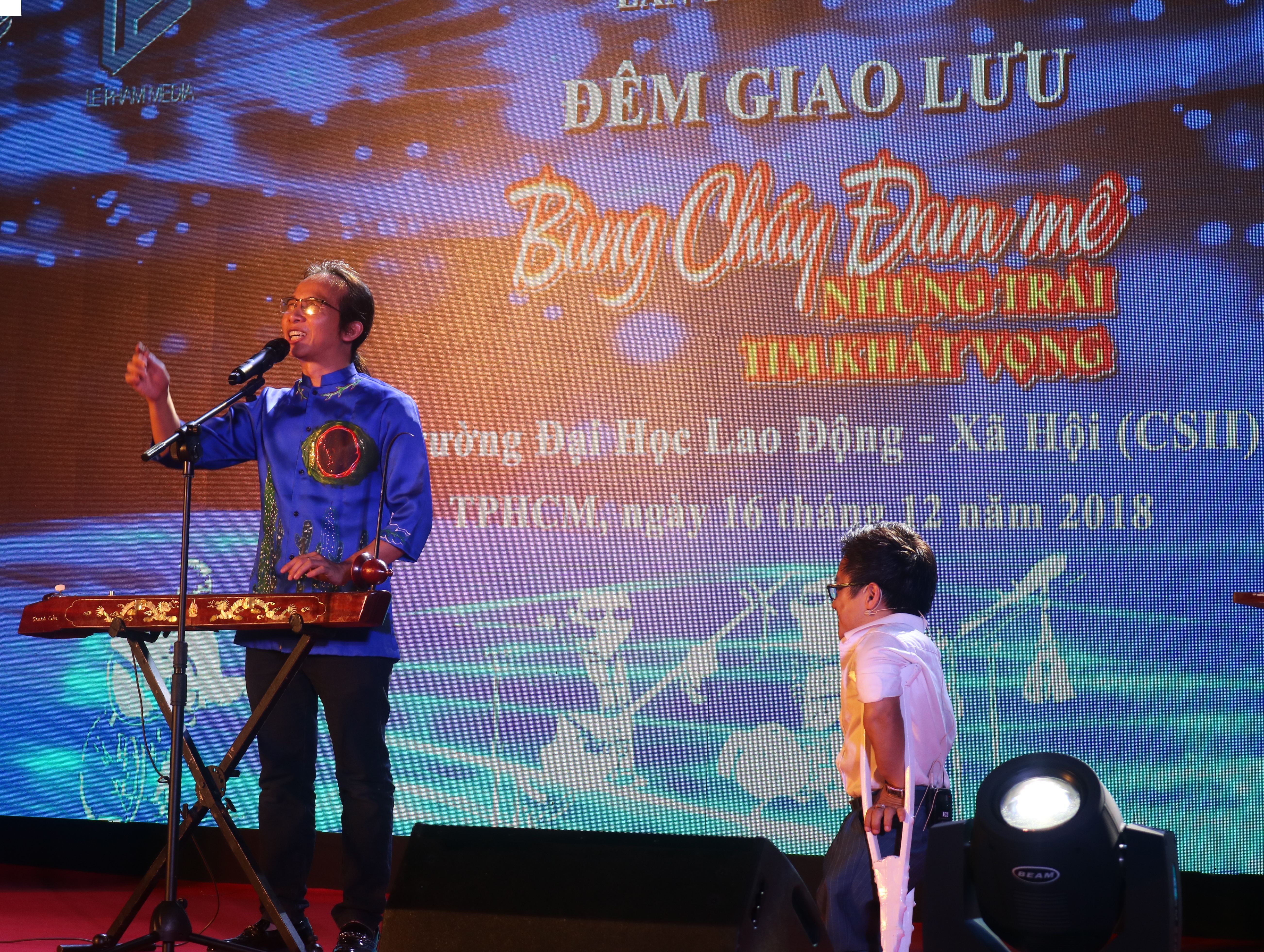 (QK7 Online) - Tối 16/12, tại trường Đại học Lao động - Xã hội Cơ sở 2 đã diễn ra đêm giao lưu giữa Ban tổ chức Hội thi ca múa nhạc người khuyết tật lần thứ II và Đoàn trường Đại học Lao động - Xã hội Cơ sở 2 với chủ đề “Bùng cháy đam mê - Những trái tim khát vọng". Đến dự có Bà Lê Phạm - Giám đốc Công ty Truyền thông Quốc tế Lê Phạm - Trưởng ban tổ chức Hội thi; Ông Nguyễn Trọng Đàm - Phó Chủ tịch Hội người khuyết tật trẻ mồ côi Việt Nam cùng nhiều nghệ sĩ, ca sĩ, doanh nhân và các đại sứ nhân ái.