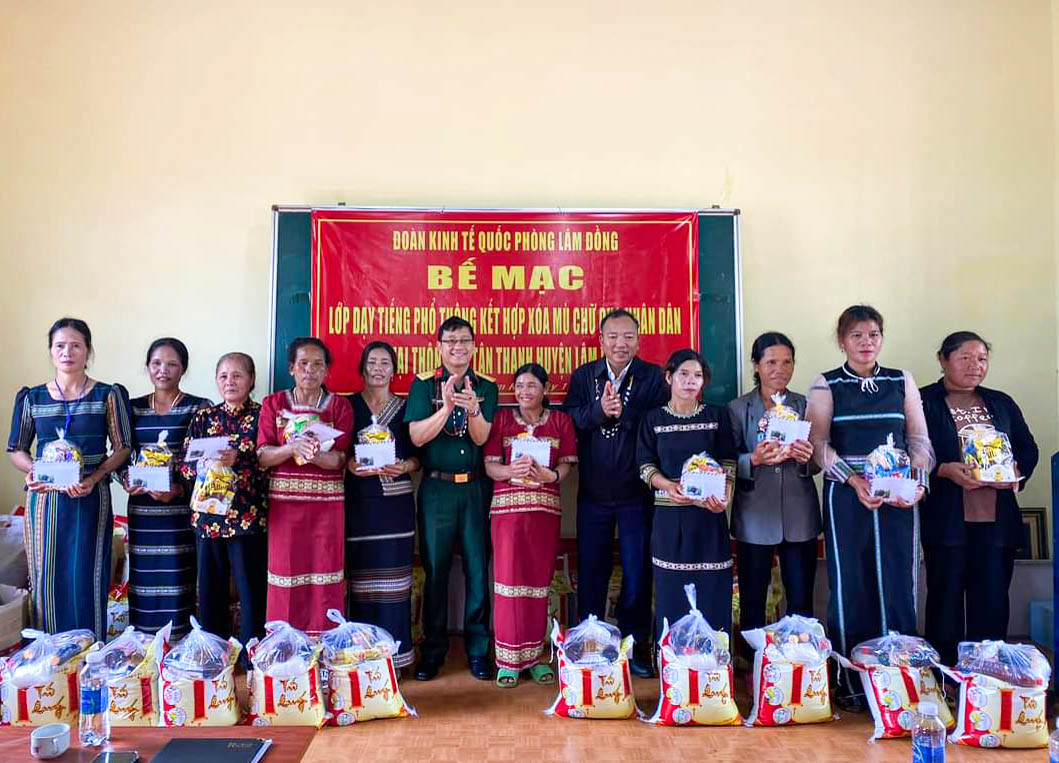 Đoàn KTQP Lâm Đồng bế giảng lớp học xóa mù chữ và tặng quà cho người dân.