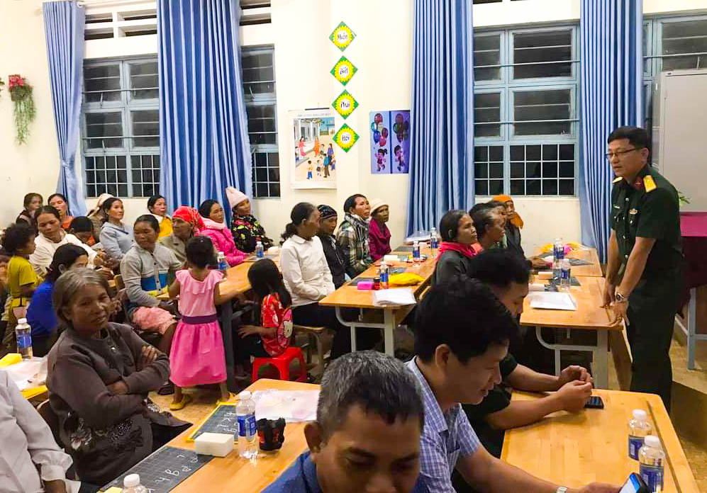 Chỉ huy Đoàn KTQP Lâm Đồng tuyên truyền các chủ trương của Đảng, chính sách pháp luật Nhà nước, quy định của địa phương tại các buổi học.