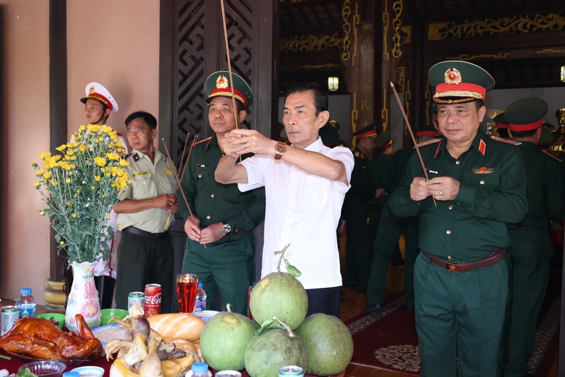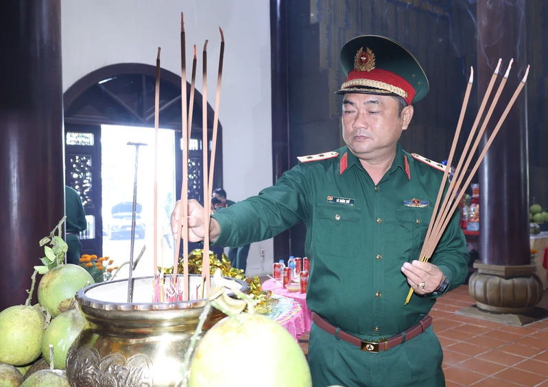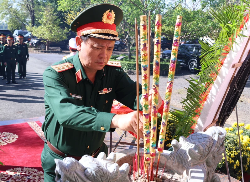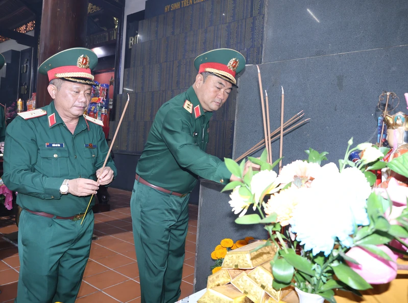 Trung tướng Lê Xuân Thế, Ủy viên Trung ương Đảng, Tư lệnh Quân khu; Thiếu tướng Trần Chí Tâm, Ủy viên Ban Thường vụ, Phó Chính ủy Quân khu dâng hương tri ân anh hùng Liệt sĩ.