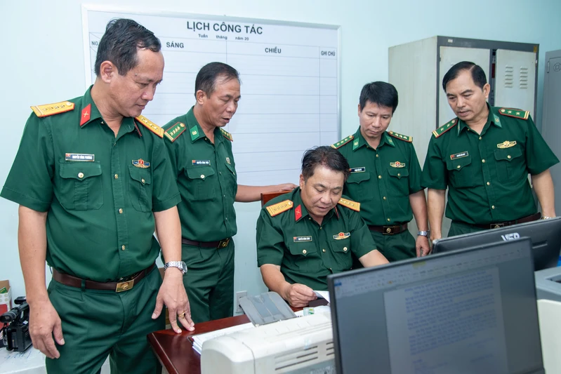 Tại Bộ Chỉ huy quân sự tỉnh Tây Ninh, đoàn công tác tiến hành kiểm tra hệ thống sổ sách, văn kiện, kế hoạch... của các ngành tham mưu, chính trị, hậu cần – kỹ thuật.