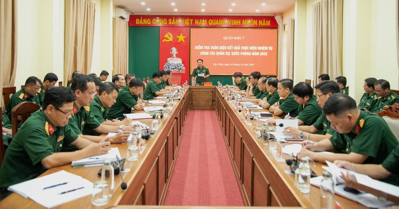(QK7 Online) - Ngày 28/10, Đại tá Nguyễn Hồng Cảnh, Phó Chủ nhiệm Chính trị Quân khu 7 trưởng đoàn công tác đến kiểm tra toàn diện kết quả thực hiện nhiệm vụ công tác quân sự, quốc phòng năm 2025 của Bộ Chỉ huy Quân sự tỉnh Tây Ninh để chuẩn bị phục vụ Bộ Quốc phòng kiểm tra.
