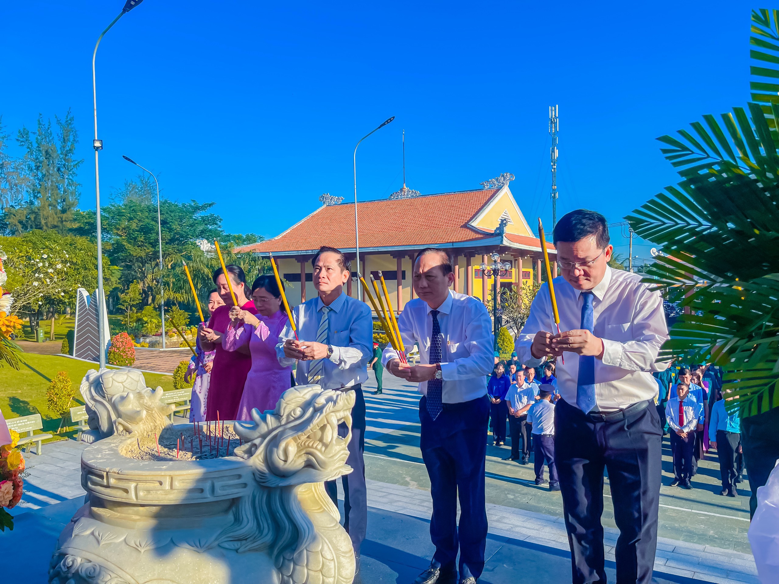 Đoàn đã đặt vòng hoa, thắp hương lên đài tưởng niệm và bày tỏ lòng biết ơn sâu sắc đối với sự hy sinh cao cả của các anh hùng liệt sĩ vì nền độc lập, tự do của Tổ quốc, vì nhiệm vụ quốc tế cao cả. Đồng thời, thể hiện quyết tâm của Đảng bộ, chính quyền và Nhân dân huyện nhà trong xây dựng khối đại đoàn kết toàn dân, xây dựng, chỉnh đốn Đảng và hệ thống chính trị trong sạch, vững mạnh; phát huy vai trò nêu gương của cán bộ, đảng viên trong phát triển kinh tế - xã hội, chăm lo đời sống Nhân dân; bảo đảm quốc phòng – an ninh, xây dựng quê hương, đất nước ngày càng giàu đẹp, văn minh.