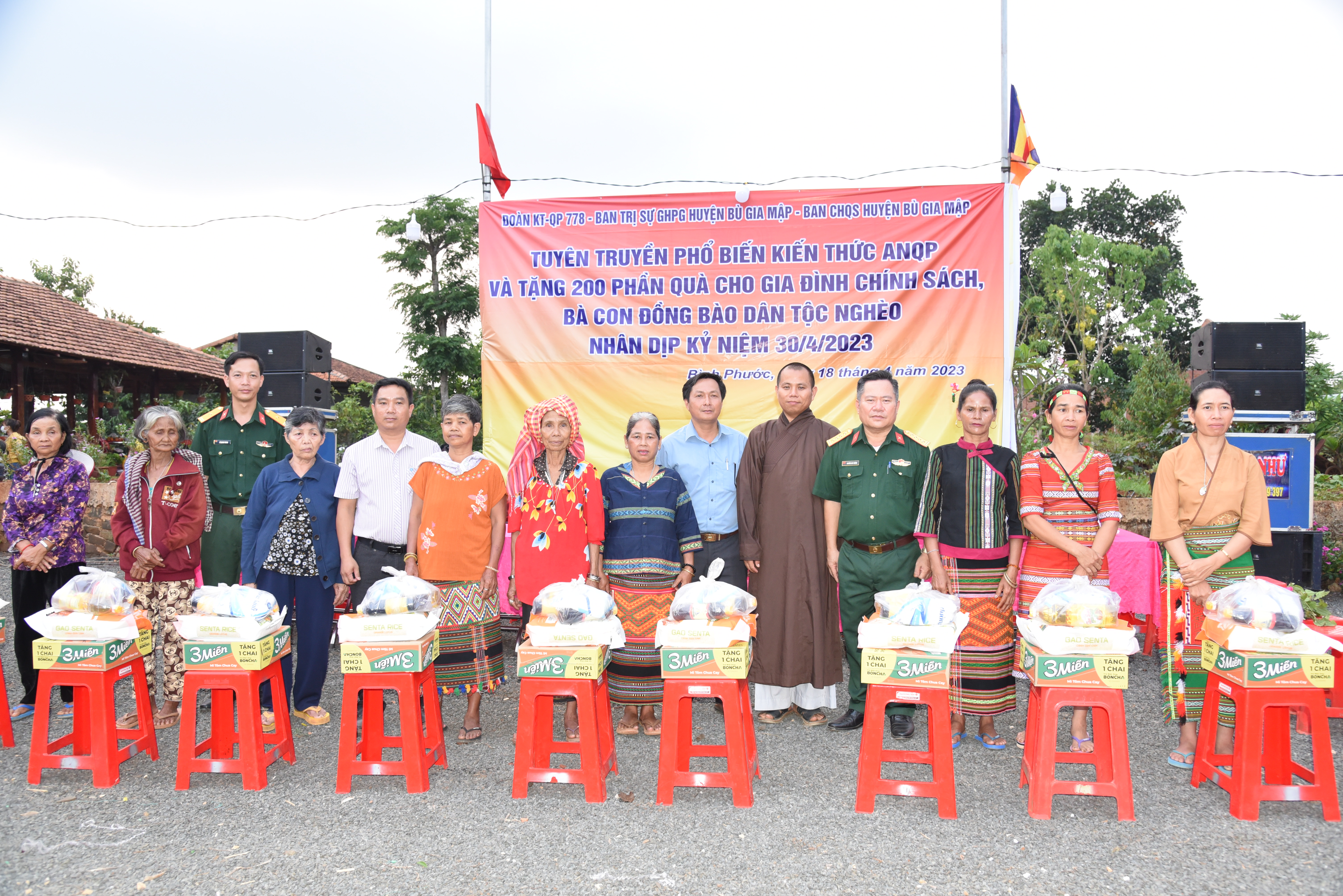 Ban Chỉ huy Đoàn 778 tặng quà cho phật tử chùa Huệ Năng, thôn Bù Bưng, xã Đắk Ơ, huyện Bù Gia Mập.