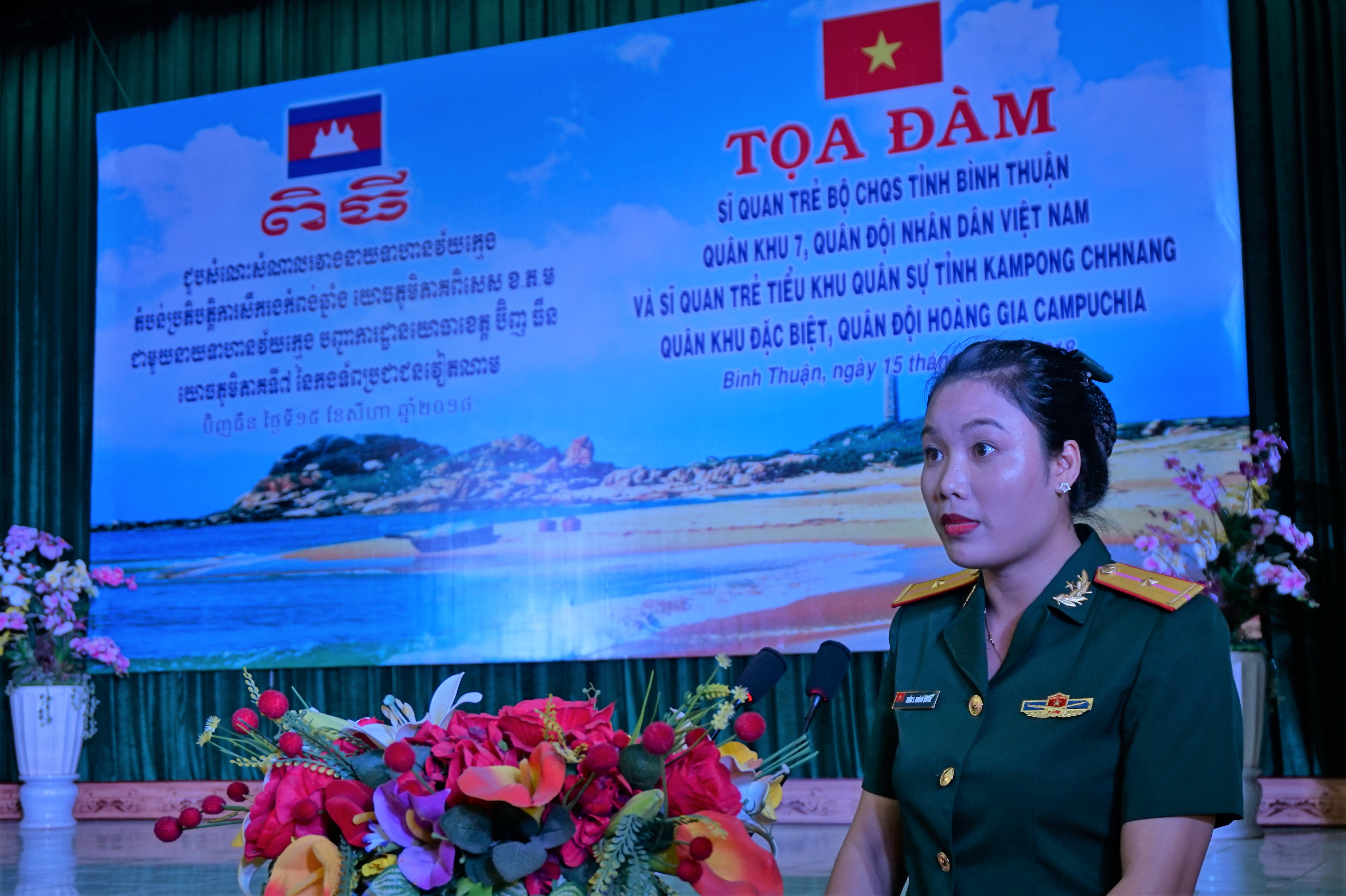 Tại buổi tọa đàm, cán bộ sĩ quan trẻ hai đơn vị đã nói lên những tâm tư, tình cảm về mối quan hệ hai nước nói chung và mối quan hệ giữa LLVT tỉnh Bình Thuận với Tiểu khu Quân sự tỉnh Kampong Chhnang nói riêng. Đồng thời đề ra những nội dung, biện pháp, những việc làm cụ thể nhằm tăng cường sự hiểu biết và chia sẻ giữa hai đơn vị.