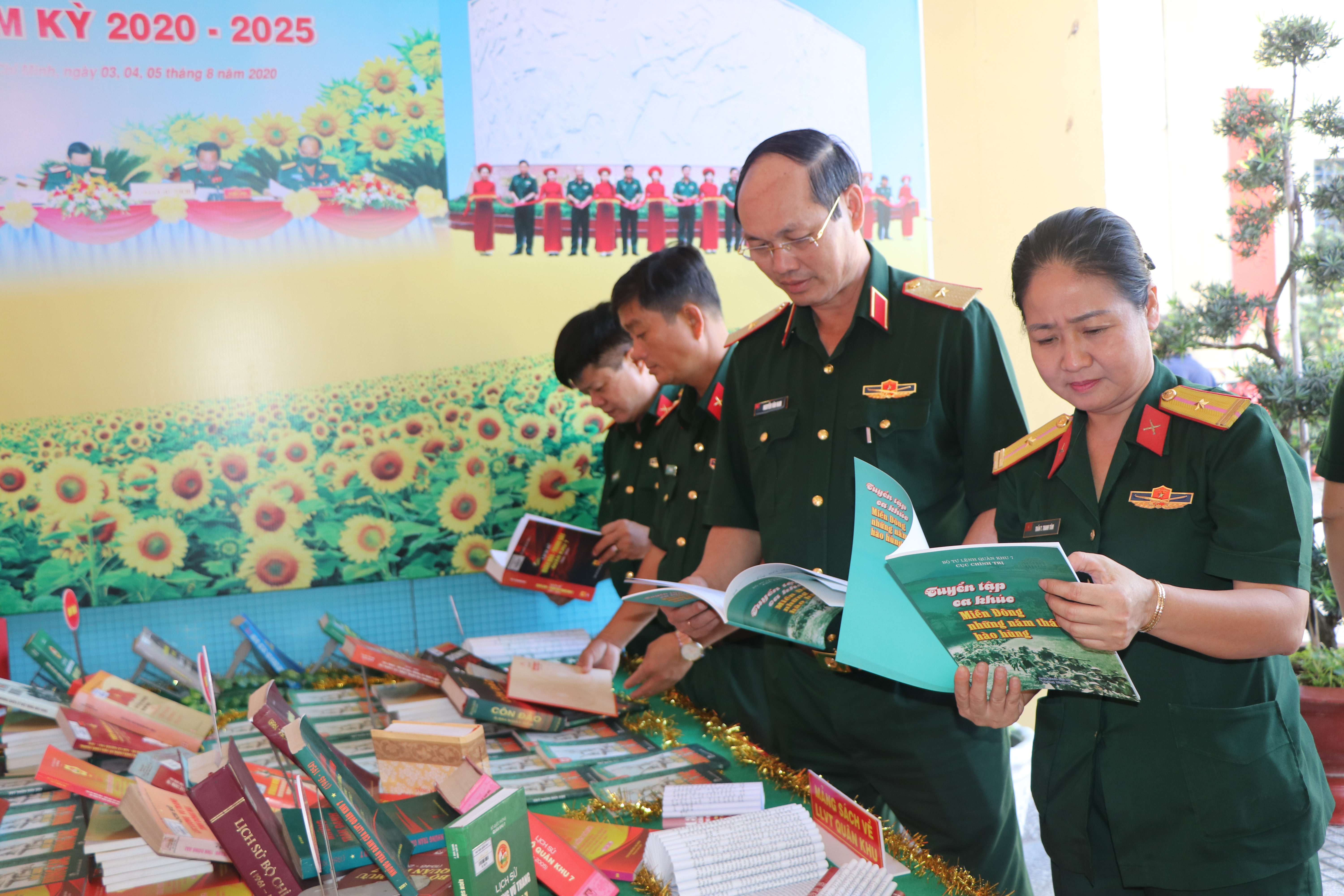 Thủ trưởng Bộ Tư lệnh TP.HCM cùng các đại biểu tham quan, tìm đọc tài liệu tại Bảo tàng Quân khu 7.
