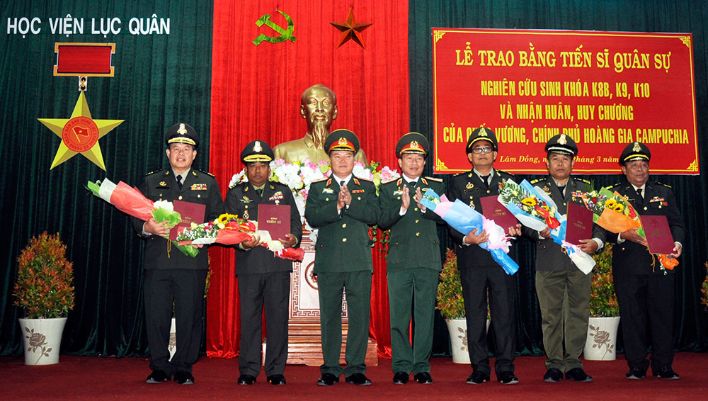 Trao bằng Tiến sĩ quân sự cho cán bộ Vương quốc Campuchia