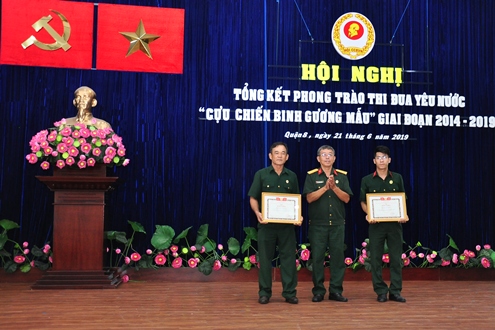 Đại diện Hội Cựu Chiến binh Thành phố Hồ Chí Minh trao bằng khen cho tập thể, cá nhân Hội Cựu chiến binh Quận 8 có thành tích tốt trong phong trào thi đua yêu nước “Cựu chiến binh gương mẫu” giai đoạn 2014 – 2019.