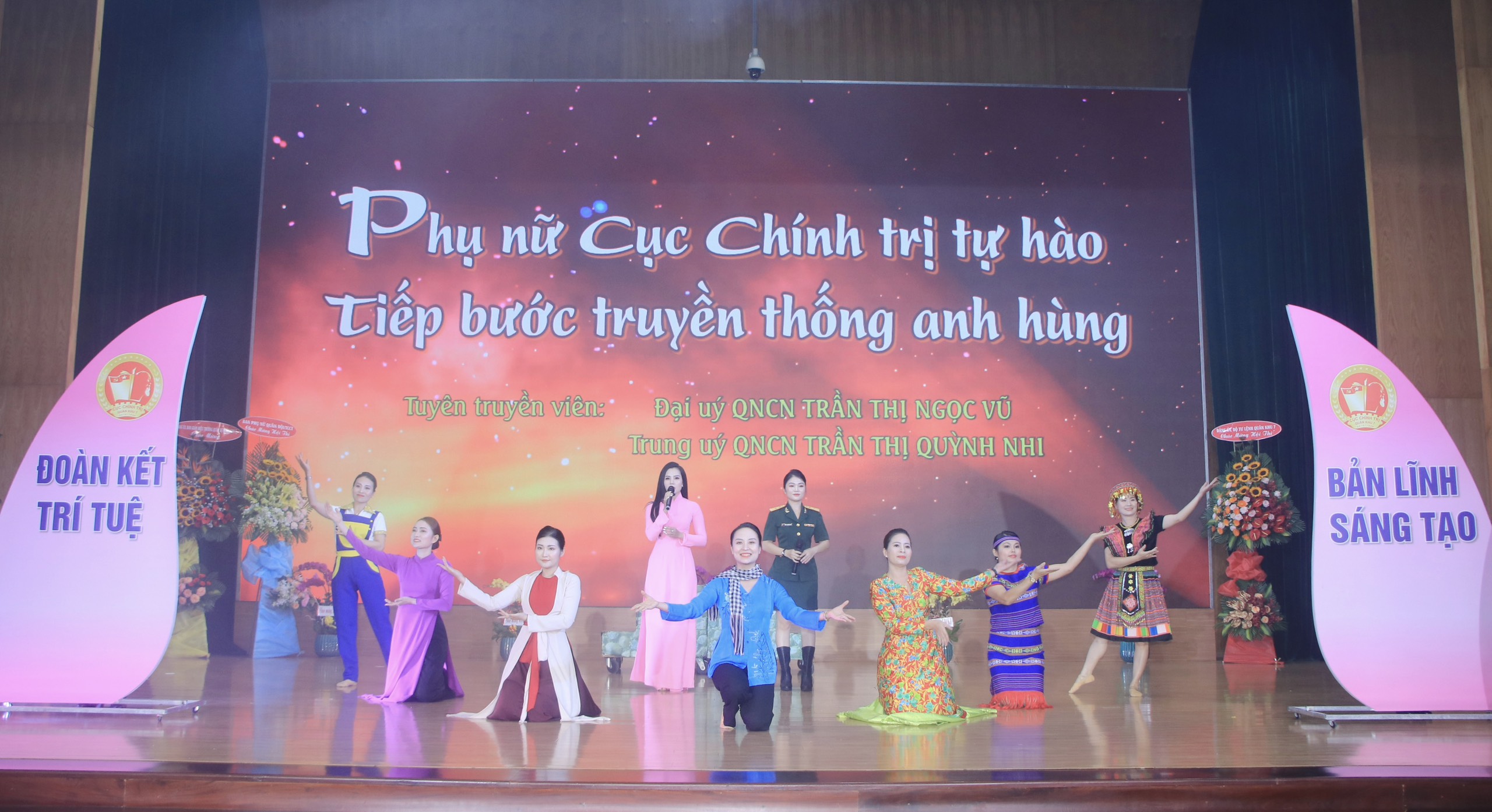 Đến với phần thi tuyên truyền và năng khiếu, nội dung về truyền thống phụ nữ Việt Nam, phụ nữ Quân đội, phụ nữ Cục Chính trị cũng như những tấm gương phụ nữ anh hùng trong chiến đấu, học tập, công tác; các phong trào thi đua, mô hình hay trong hoạt động công tác hội, gương phụ nữ vượt khó vươn lên, xây dựng "gia đình 5 không, 3 sạch"… được cán bộ, hội viên Cục Chính trị thể hiện sinh động, đầy đủ cung bậc cảm xúc, hấp dẫn, thu hút sự quan tâm, theo dõi, cổ vũ của khán giả.