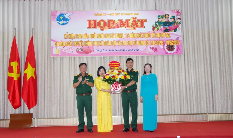 Phát biểu tại buổi họp mặt, Đại tá Hồng Việt Bắc, Phó Chính ủy Sư đoàn biểu dương những thành tích mà phụ nữ Sư đoàn đã đạt được thời gian qua, đồng thời mong muốn trong thời gian tới, Hội Phụ nữ Sư đoàn tiếp tục phát huy truyền thống của đơn vị, nêu cao tinh thần tự lực, đoàn kết, giúp nhau vươn lên thực hiện thắng lợi mọi nhiệm vụ được giao, góp phần xây dựng tổ chức, cơ quan vững mạnh, gia đình ấm no, hạnh phúc.