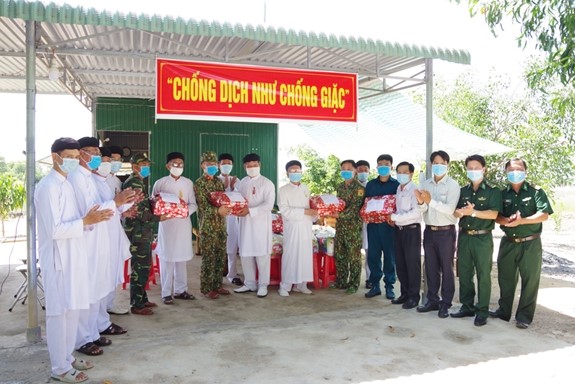 Tại mỗi điểm chốt, thay mặt cho đoàn, Giáo sư Thái Thọ Thanh, Trưởng Ban đại diện Hội thánh Cao Đài Tây Ninh ân cần thăm hỏi, động viên, chia sẻ những khó khăn, vất vả mà các chiến sĩ thuộc các lực lượng vũ trang hơn một năm qua đã kiên cường bám trụ, giữ vững an ninh biên giới, kiểm soát chặt chẽ không để dịch bệnh xâm nhập, lây lan vào trong cộng đồng, để bà con nhân dân tuyến sau nói chung, tín đồ Đạo Cao Đài nói riêng được an tâm, lao động sản xuất và thực hiện đạo sự.