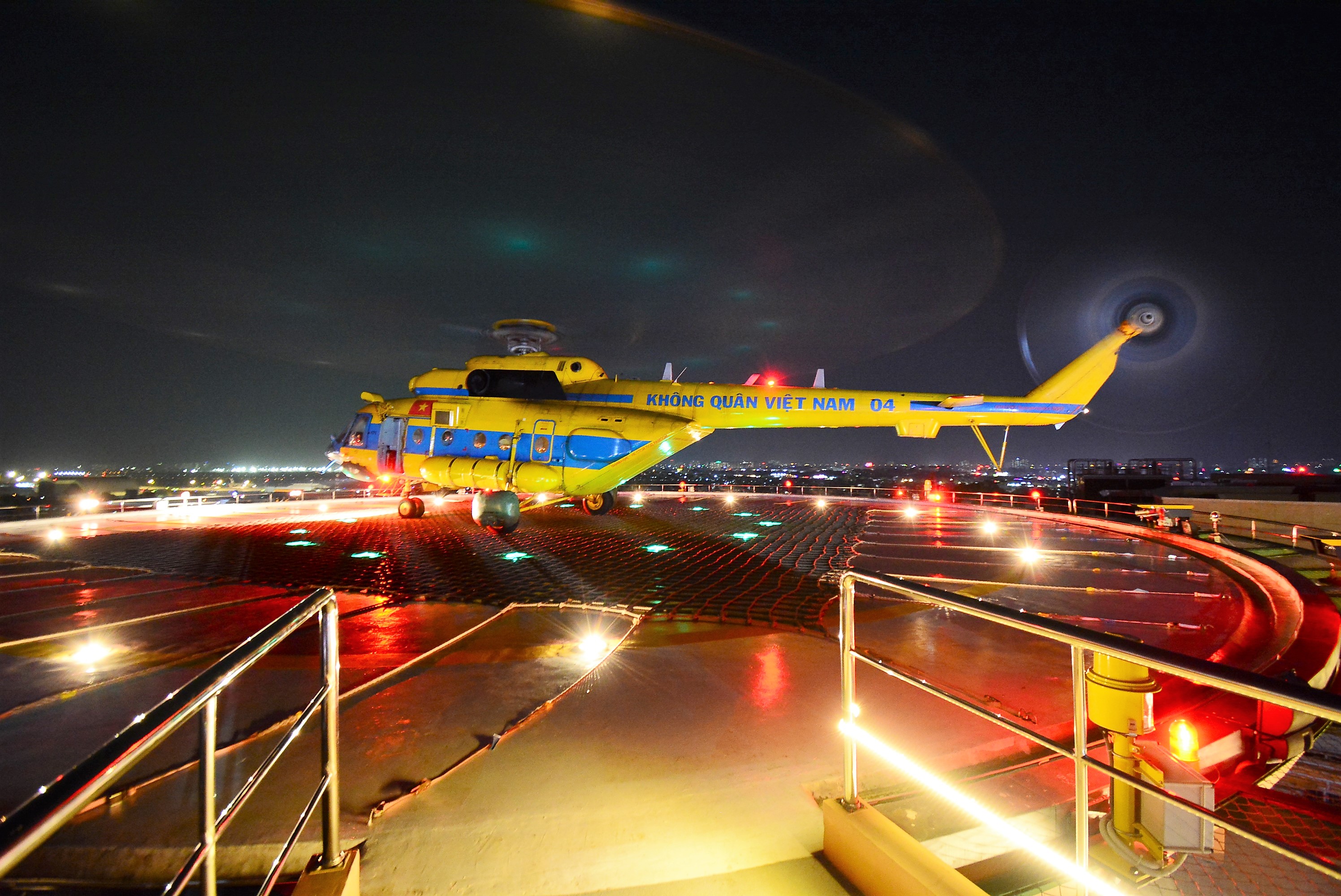 Huấn luyện trực thăng bay đêm tại sân đỗ Bệnh viện Quân y 175