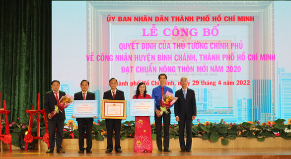 Huyện Bình Chánh là huyện cuối cùng của TP.HCM đạt chuẩn nông thôn mới, sau các huyện Hóc Môn, Nhà Bè, Củ Chi và Cần Giờ.