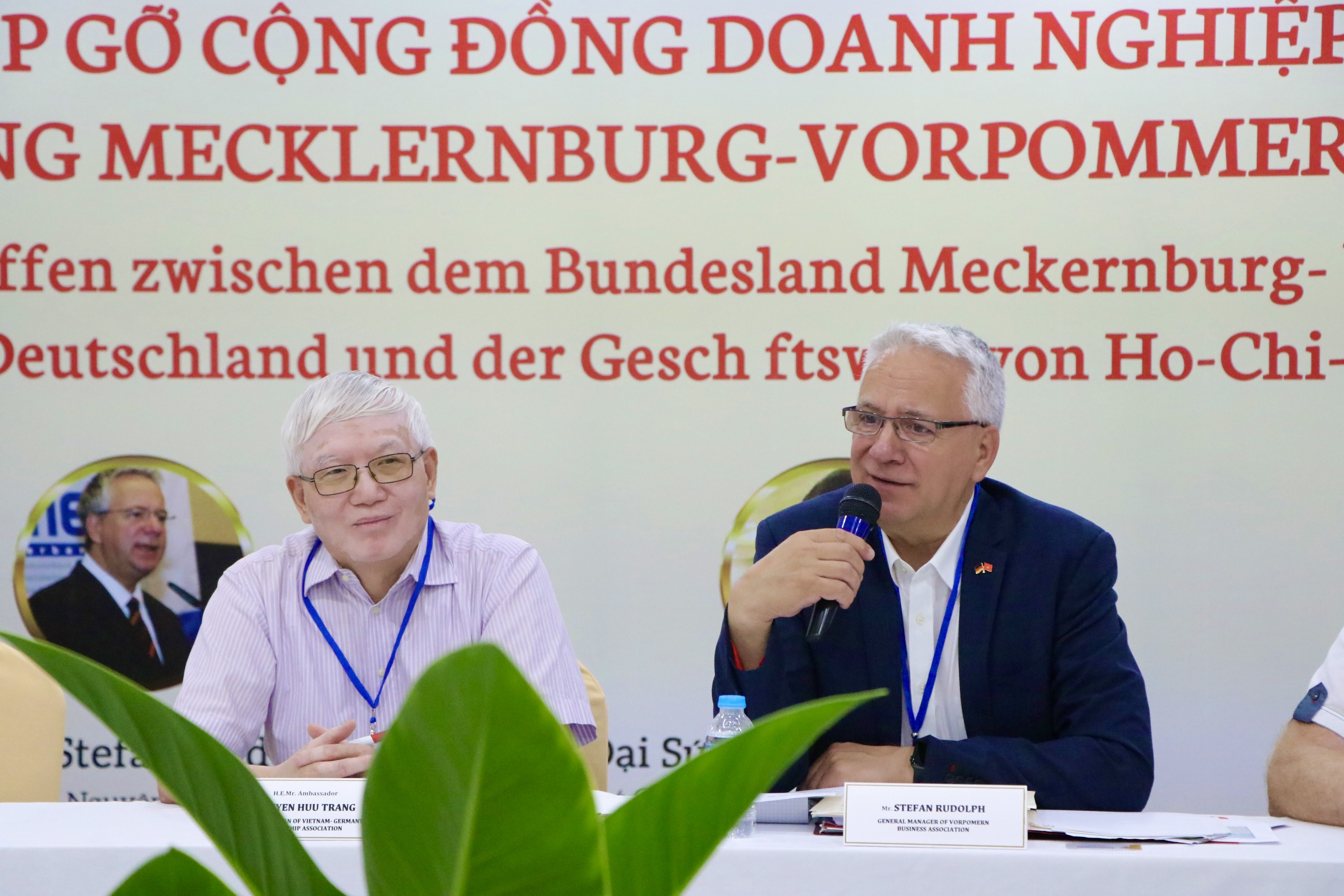 Trong phiên gặp gỡ Bang MV và Doanh nghiệp Tp. Hồ Chí Minh, Bang MV giới thiệu cơ hội đầu tư, thương mại và các lĩnh vực hợp tác với Bang MV, CHLB Đức. Các bên trao đổi ý kiến và đề xuất về biện pháp, phương hướng hợp tác chiến lược toàn diện.