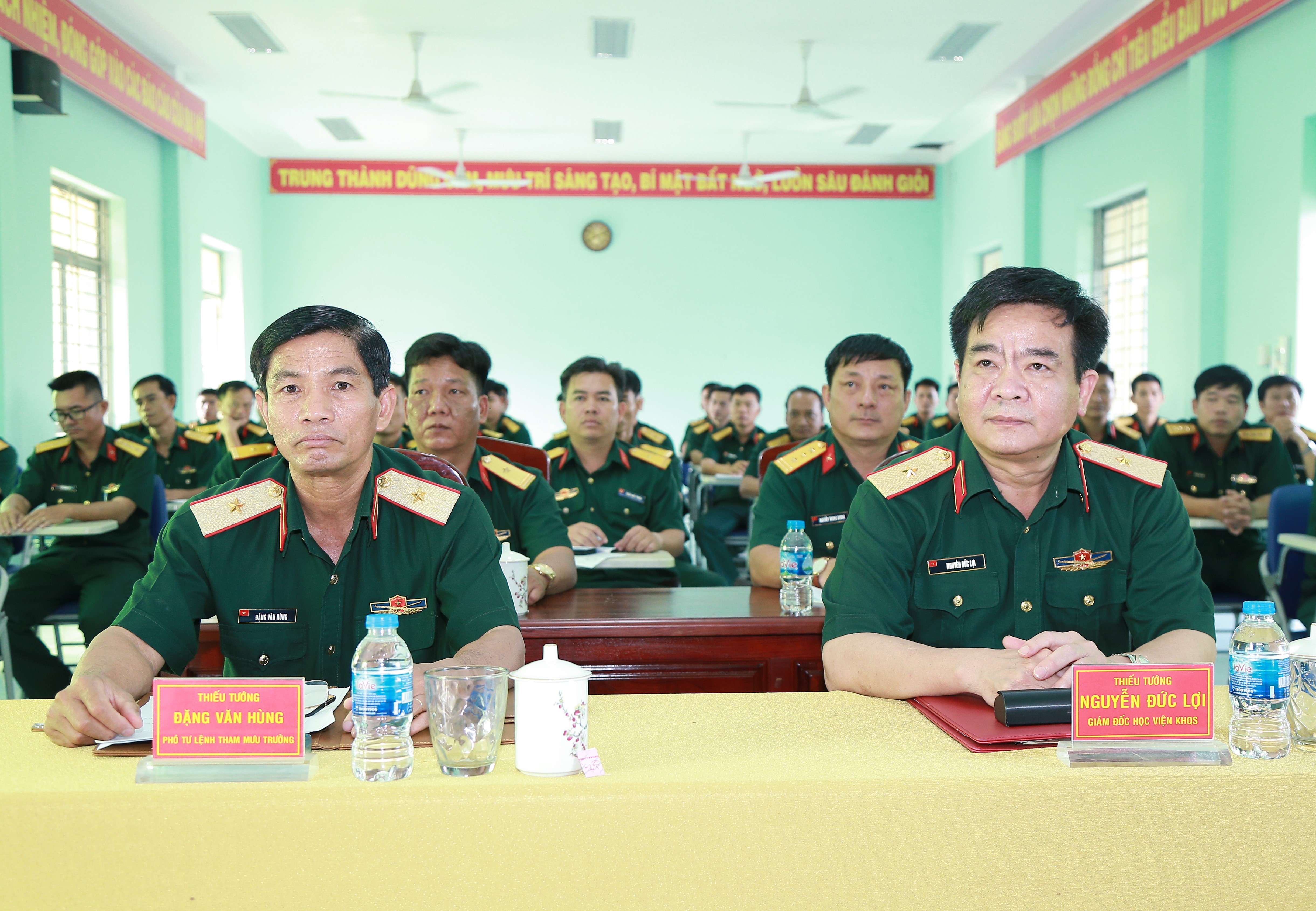 Thiếu tướng, Tiến sĩ Nguyễn Đức Lợi, Giám đốc Học viện Khoa học Quân sự (bìa phải); Thiếu tướng Đặng Văn Hùng, Phó Tư lệnh, Tham mưu trưởng Quân khu dự lễ khai giảng.