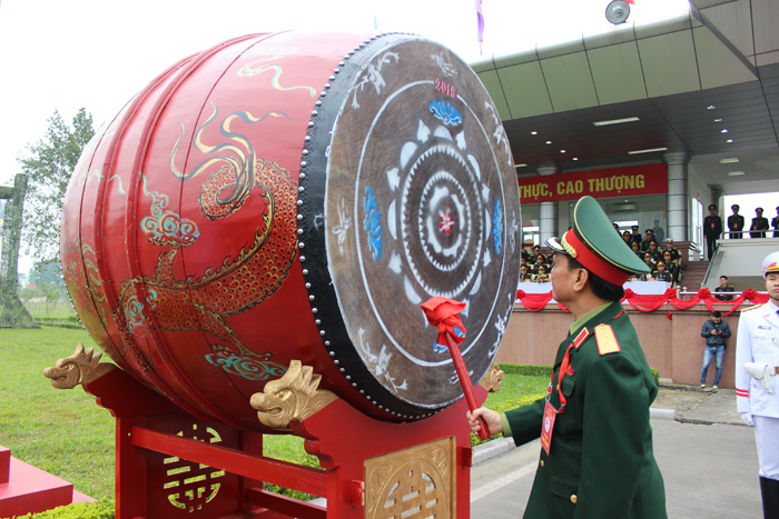 Trung tướng Ngô Minh Tiến đánh trống khai mạc hội thao.
